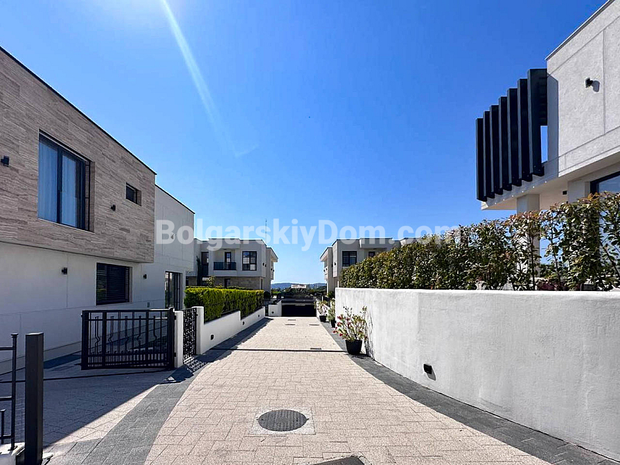 Kompleks jest zamknięty, wyposażony w monitoring wideo i kontrolę dostępu, co gwarantuje prywatność i bezpieczeństwo. W budowie użyto materiałów najwyższej klasy: izolacja termiczna BAUCEM, ceramiczna cegła Wienerberger Porotherm, aluminiowe okna ETEM z potrójnymi szybami. Wszystko to tworzy niezawodny, energooszczędny i estetycznie dopracowany dom — w dosłownym tego słowa znaczeniu. Sunny Island to nowoczesny kompleks w cichej, zielonej części Chernomorets, gdzie blisko jest morze, sosny i poczucie pełnej wolności. To poszukiwana przez wielu opcja, gdzie jakość życia i lokalizacja idealnie się pokrywają.