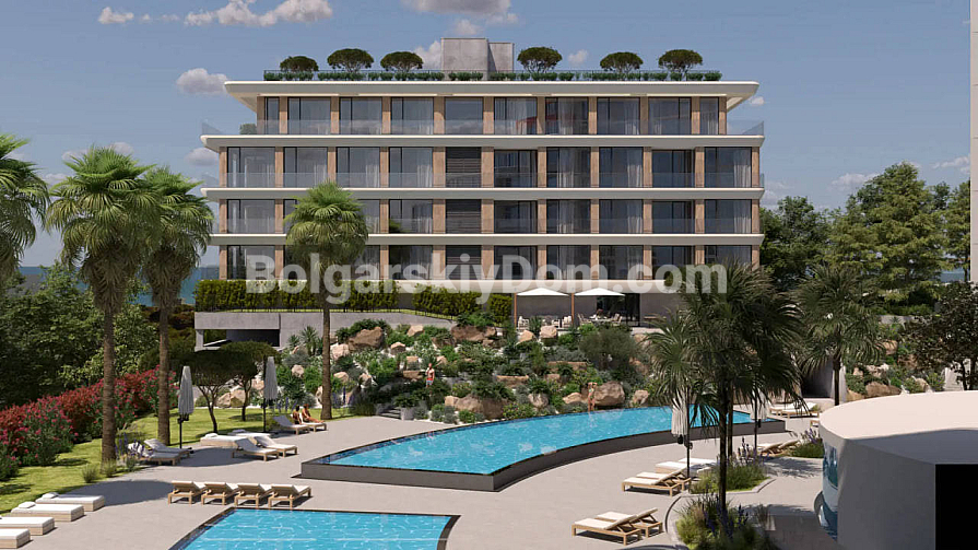 Kompleks Azur Aqua znajduje się w najzielonej i najspokojniejszej części Sw. Konstantyn i Helena, zaledwie 50 metrów od najlepszych plaż i 10 minut jazdy od centrum Warny. Cała koncepcja kompleksu jest skierowana na zdrowy tryb życia: znajduje się tu własne spa i centrum medyczne z krytym basenem, sauną i siłownią, a basen zewnętrzny oczyszczany jest ekologicznym systemem elektrolizy soli. Teren to prawdziwy park (7000 m²) z bogatą roślinnością i systemem dźwiękowym, a bezpieczeństwo i komfort zapewnia pięciopoziomowy parking zamknięty z systemami smart i stacjami ładowania dla samochodów elektrycznych. To mieszkanie klasy A od dewelopera nagrodzonego tytułem „Budynku Roku”.