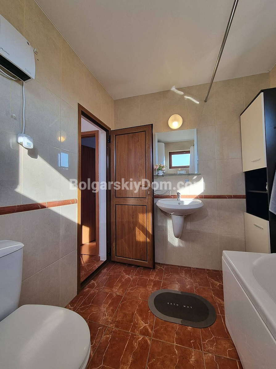 Autonomiczna nieruchomość na sprzedaż! Firma Bolgarskiy Dom oferuje dwukondygnacyjny dom z Akt 16 w miejscowości Bata (woj. Burgas). Całkowita powierzchnia: 102 m². Na parterze znajduje się kuchnia, salon z kominkiem, łazienka oraz wyjście na podwórko. Na piętrze są dwie sypialnie z pomieszczeniami gospodarczymi i łazienka. Działka o powierzchni 400 m² obejmuje parking, strefę grillową, winnicę oraz zagospodarowany ogród. Media: centralne zasilanie w prąd i wodę, szambo, system monitoringu. Gotowy do zamieszkania – wykończony w neutralnych kolorach, okna z energooszczędnymi szybami.
