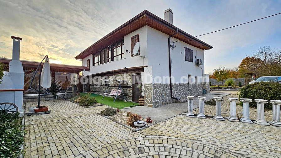 Na sprzedaż oferujemy unikalny dom położony w malowniczej wiosce „Dulewo” w regionie Burgas. Dom ten został zbudowany ponad 100 lat temu i niedawno przeszedł renowację, zachowując atmosferę i tradycje starej Bułgarii, jednocześnie oferując wszystkie nowoczesne udogodnienia. Dom o powierzchni 140 m² składa się z dwóch pięter. Na pierwszym piętrze znajdują się: hol z drewnianymi schodami prowadzącymi na drugie piętro, łazienka, sauna z wanną, przestronny salon połączony z kuchnią i częścią jadalną, przytulna strefa wypoczynkowa z kominkiem i wyjściem do zadbanego ogrodu. Na drugim piętrze znajduje się duży korytarz z strefą wypoczynkową, dwie połączone sypialnie, jedna przestronna sypialnia główna, a także łazienka z prysznicem i pralnia. Dom jest w pełni umeblowany i wyposażony w urządzenia, tekstylia oraz wszystko, co niezbędne do komfortowego życia. Działka, na której znajduje się dom, ma powierzchnię 1390 m², z możliwością rozbudowy o dodatkowe 1080 m² za dodatkową opłatą. Cała nieruchomość jest ogrodzona masywnym betonowym płotem z drewnianą bramą w stylu antycznym. Podwórze jest zagospodarowane: ścieżki wyłożone kamieniem i kostką brukową, posadzone drzewa owocowe i ozdobne krzewy. Na terenie znajduje się basen, przestronny parking, duży piec-grill, letnia kuchnia z częścią wypoczynkową i otwartym kominkiem oraz przestronna komórka.