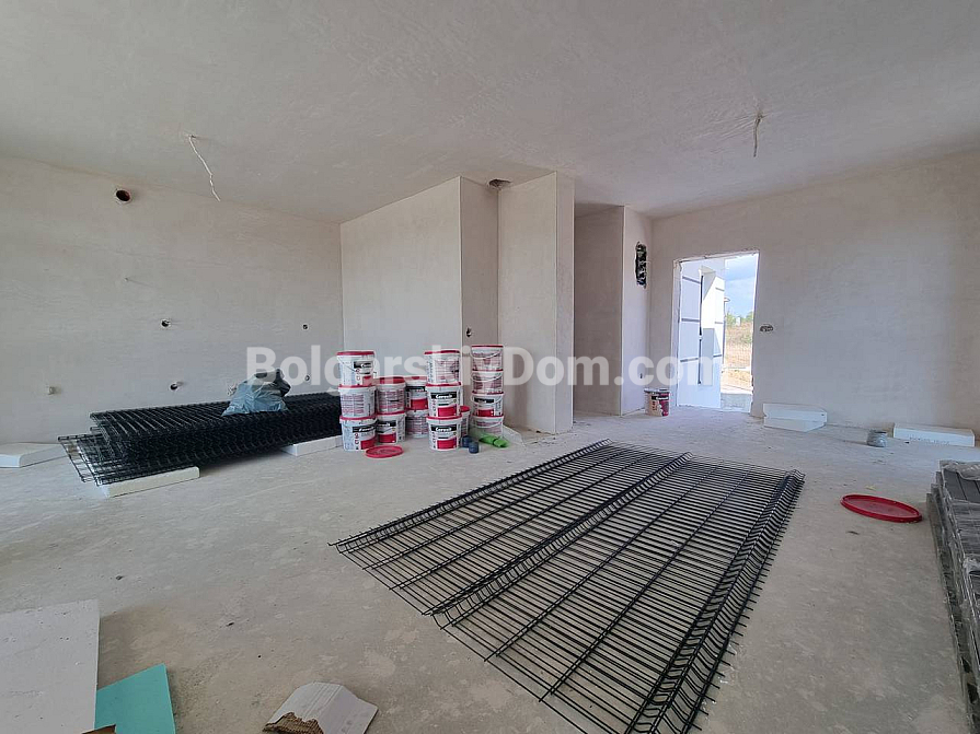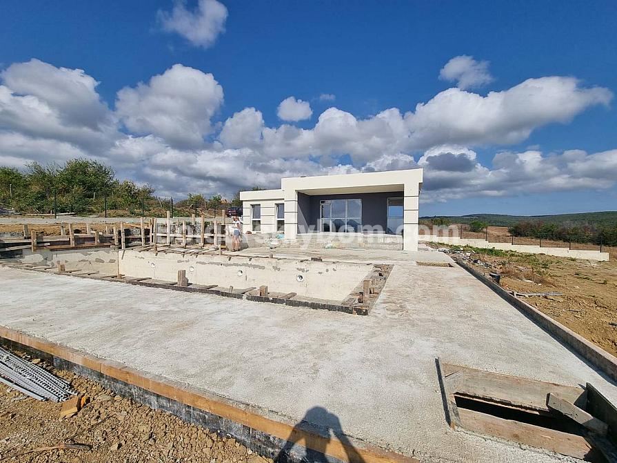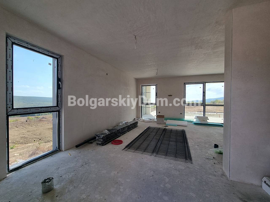 Wyobraź sobie, że budzisz się przy szelescie lasu i widzisz morze prosto z werandy – dokładnie to czeka na Ciebie w tym parterowym domu w wiosce Banya. W Bolgarskiy Dom jesteśmy pewni, że taki układ przypadnie do gustu kupującym: przestronny hol prowadzi do ogromnego salonu z kuchnią, idealnego na spotkania rodzinne, a trzy sypialnie i trzy łazienki zapewniają każdemu prywatną przestrzeń. Dom gotowy do zamieszkania, wykonany z materiałów premium, wyposażony w klimatyzację, basen na działce i miejsce parkingowe. System inteligentnego domu można zainstalować za dodatkową opłatą. Dom ma 131 m² na działce 1500 m², bez mebli.