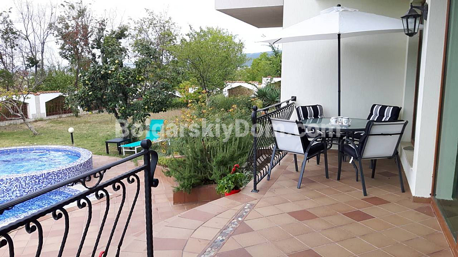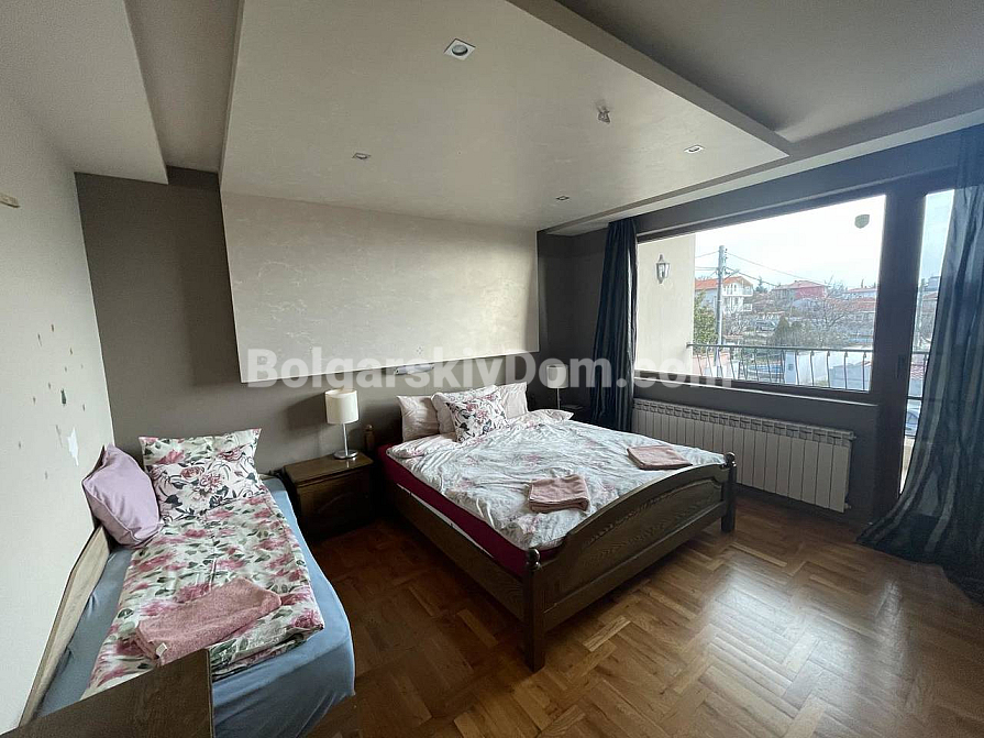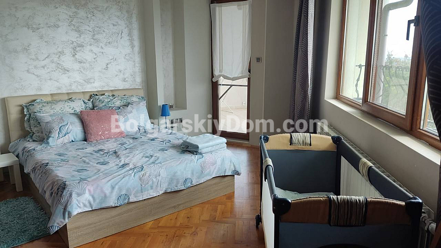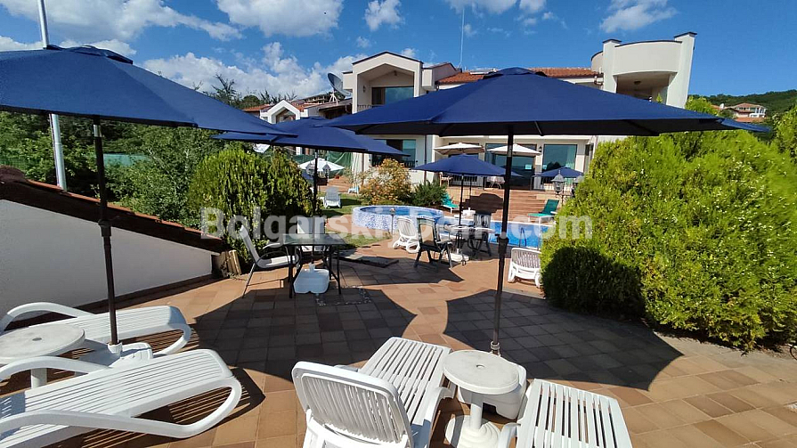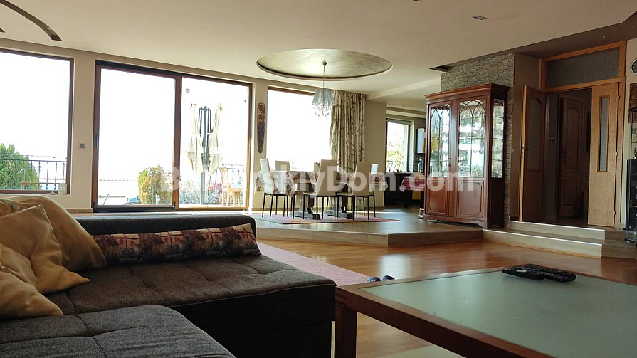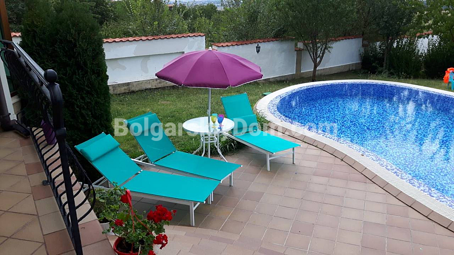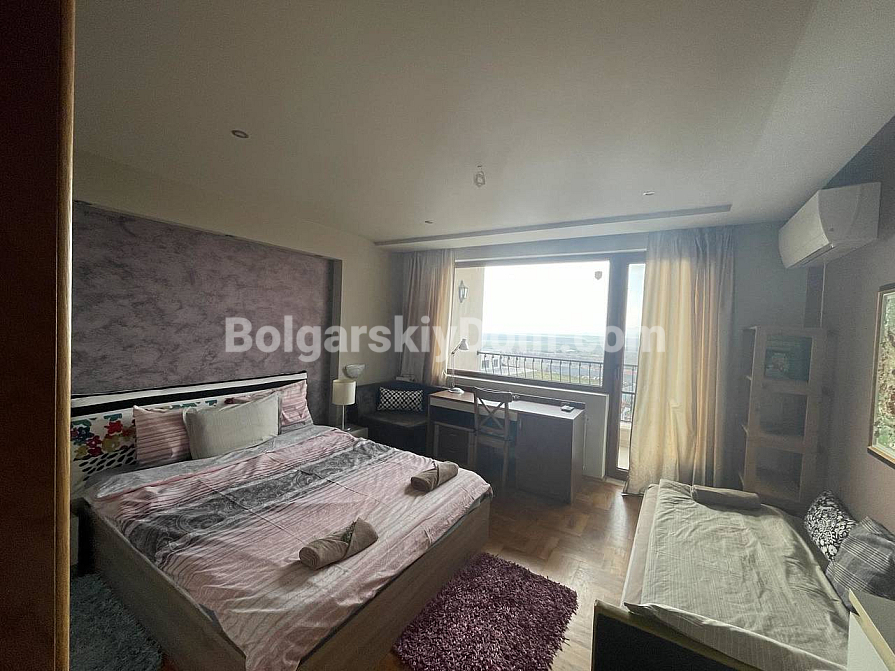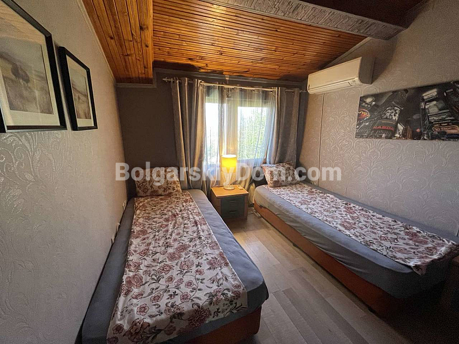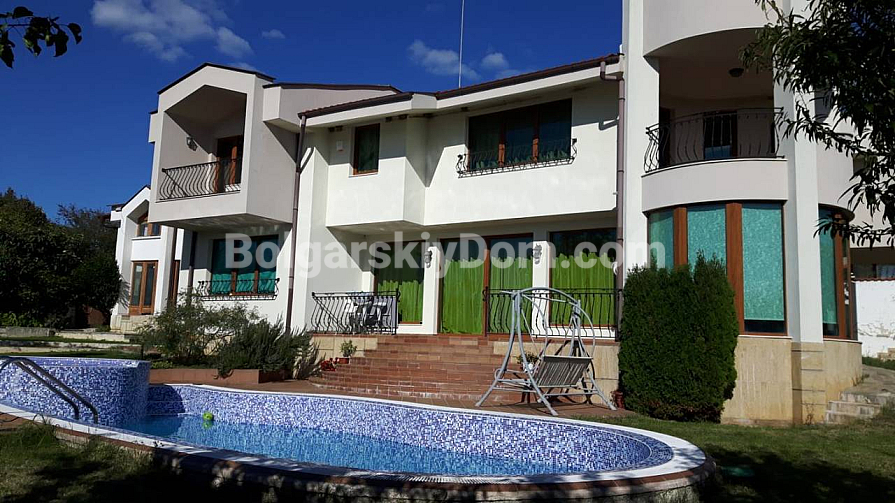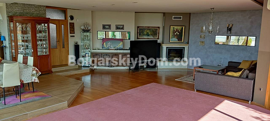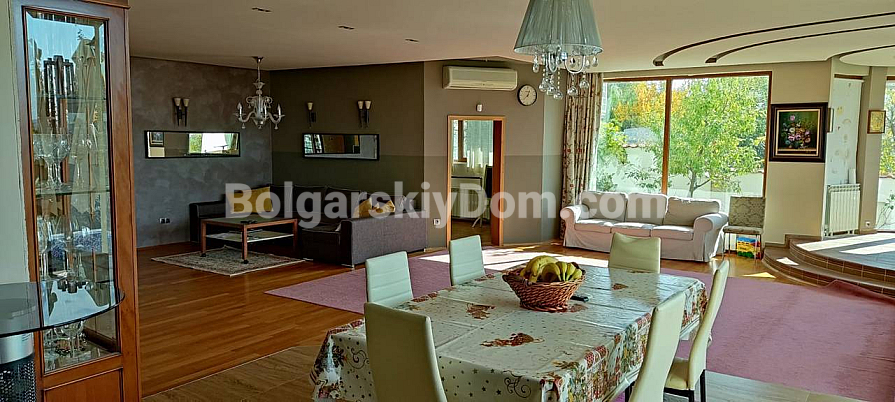Dom jest idealny dla dużej rodziny lub osób poszukujących maksymalnego komfortu i funkcjonalności. W środku znajduje się osiem sypialni, kilka przestronnych salonów, trzy w pełni wyposażone kuchnie, trzy łazienki i dwa toalety dla gości (łącznie 14 pomieszczeń). Każdy element wnętrza – od architektury po meble – wypełniony jest światłem, harmonią i stylem. Do głównych zalet tej ekskluzywnej nieruchomości należą duży basen z częścią relaksacyjną, zadbany ogród i trzy garaże o łącznej powierzchni 88 m². Lokalizacja łączy górską prywatność z dogodną bliskością morza i wszystkich udogodnień Sunny Beach (zaledwie kilka minut samochodem). Doskonałe zarówno do zamieszkania, jak i na pensjonat.