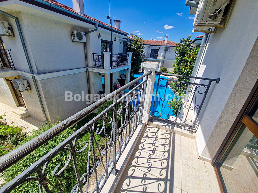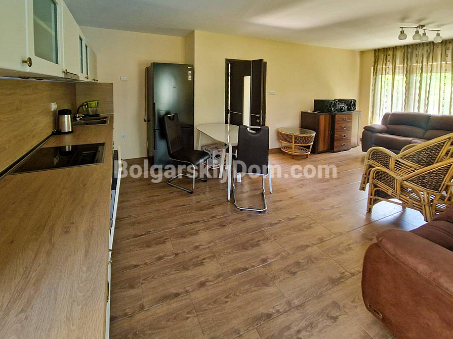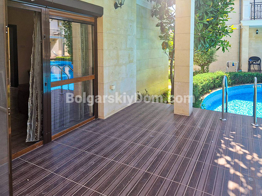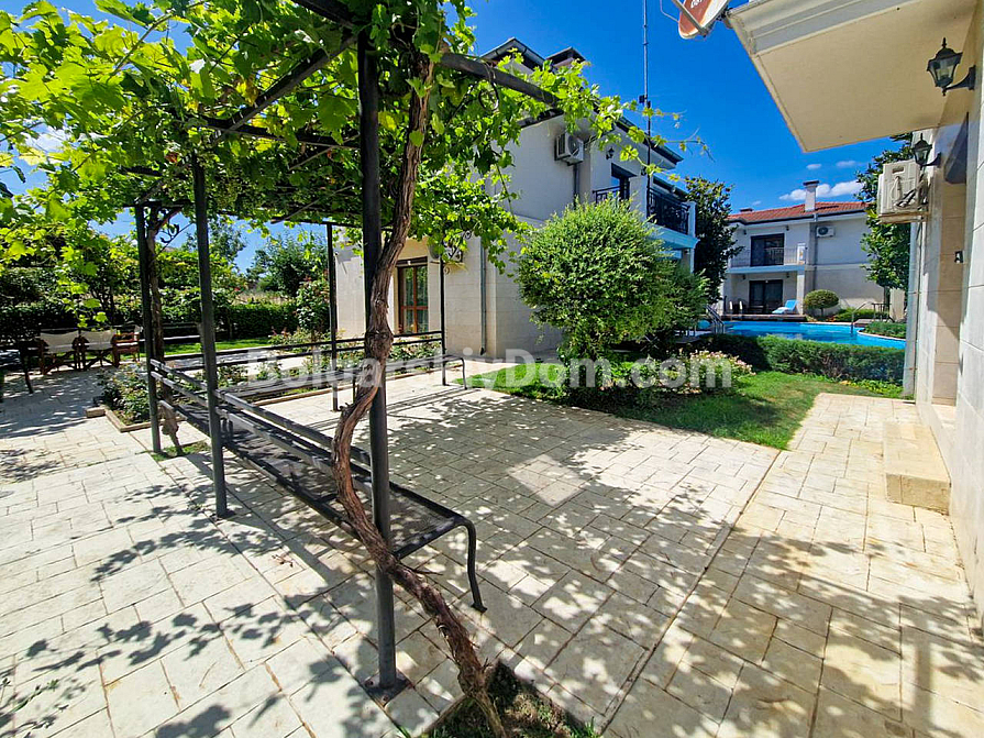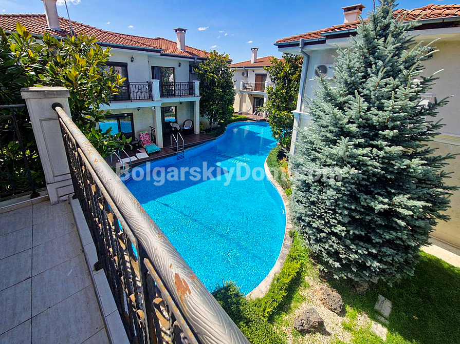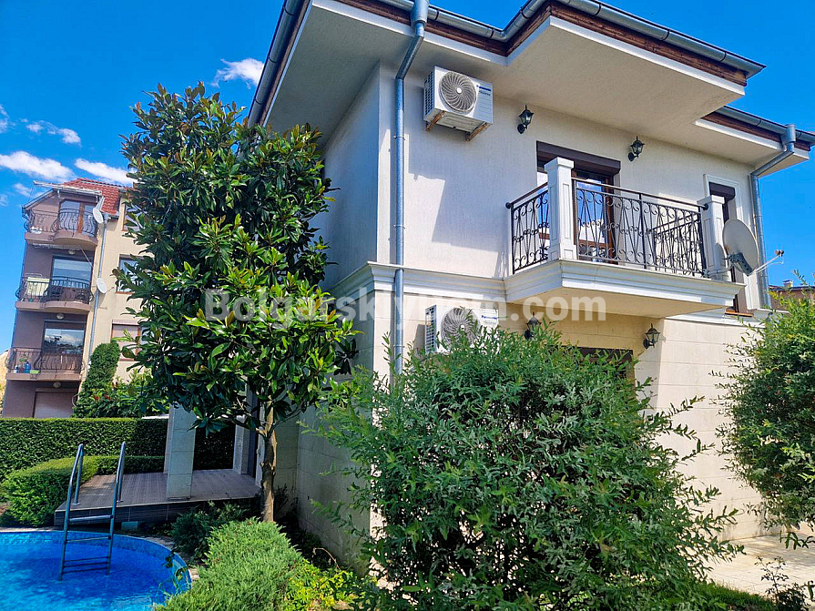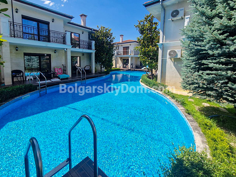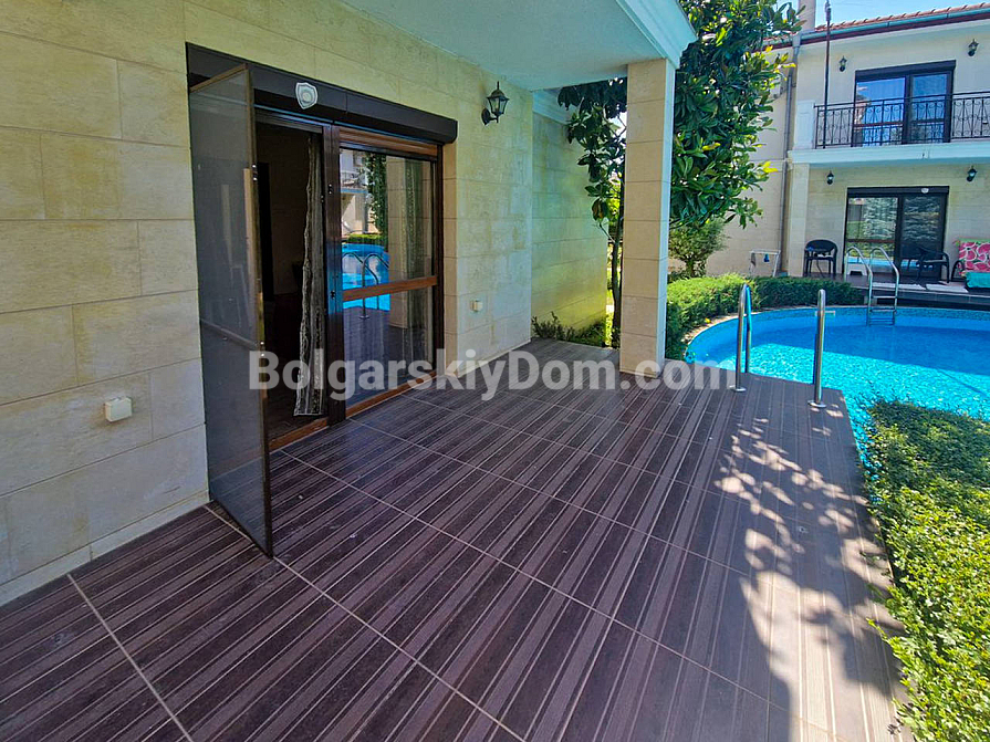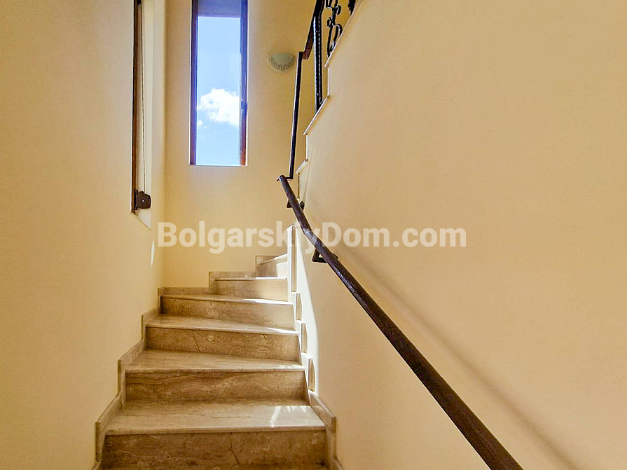 Oferta premium dla klientów Bolgarskiy Dom! Prezentujemy przytulny dwupiętrowy luksusowy dom szeregowy w Ravdzie, idealny jako wygodny dom rodzinny lub inwestycję z wysoką rentownością wynajmu w sezonie! Całkowita powierzchnia 116 m² obejmuje: na parterze przestronny salon z kominkiem, w pełni wyposażoną kuchnię, spiżarnię, łazienkę oraz taras z wyjściem do basenu. Na piętrze znajdują się dwie jasne sypialnie, łazienka oraz trzy tarasy, z których można podziwiać widoki okolicy. Położony zaledwie 300 metrów od morza, a specjalna oferta cenowa sprawia, że jest to gorąca oferta — zadzwoń, aby umówić się na prezentację.