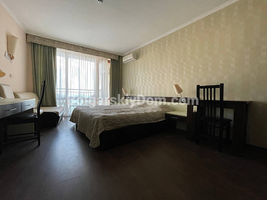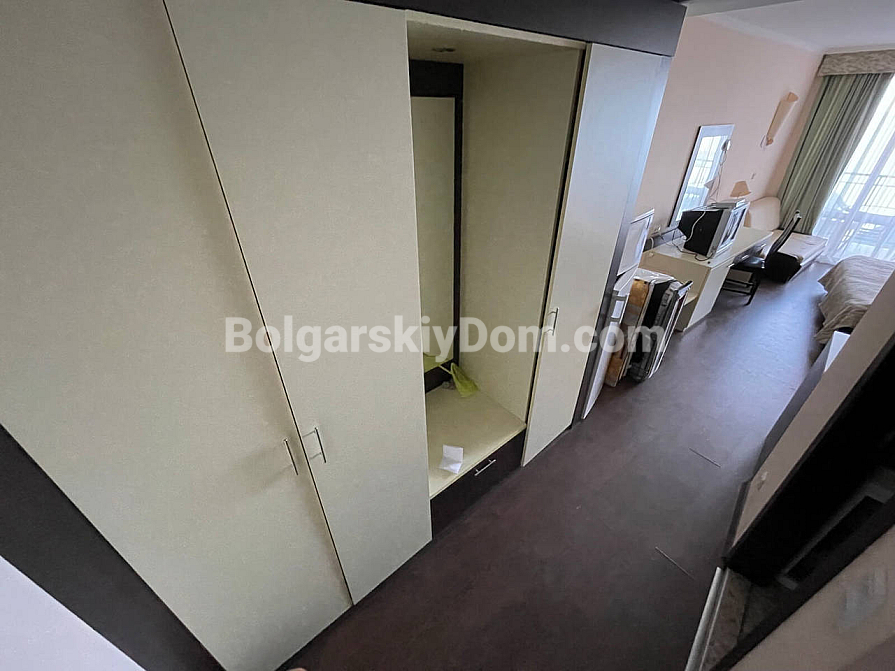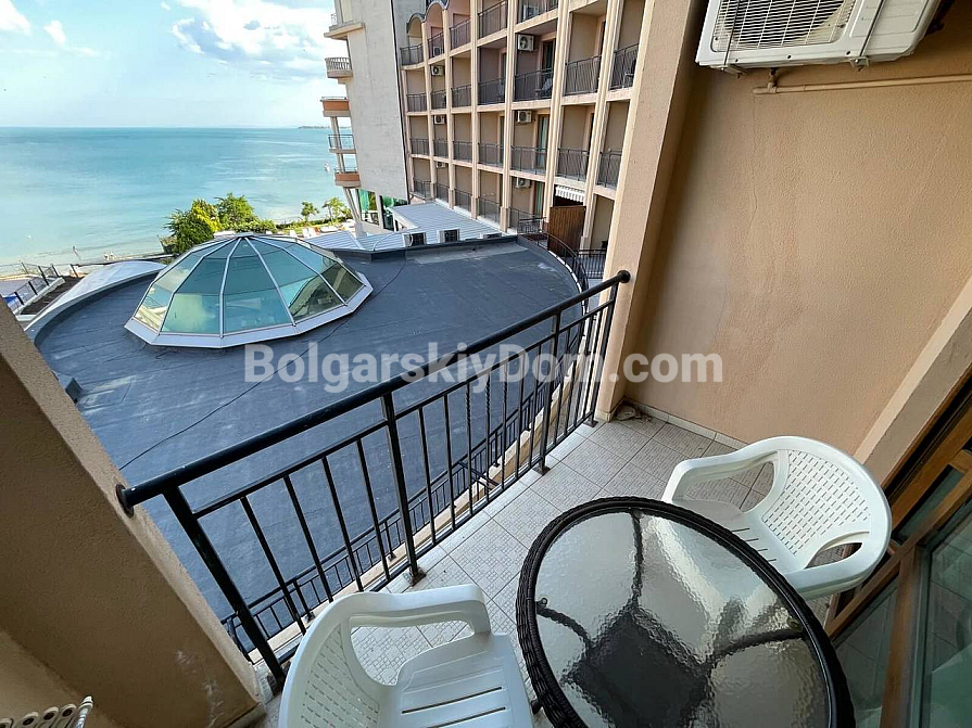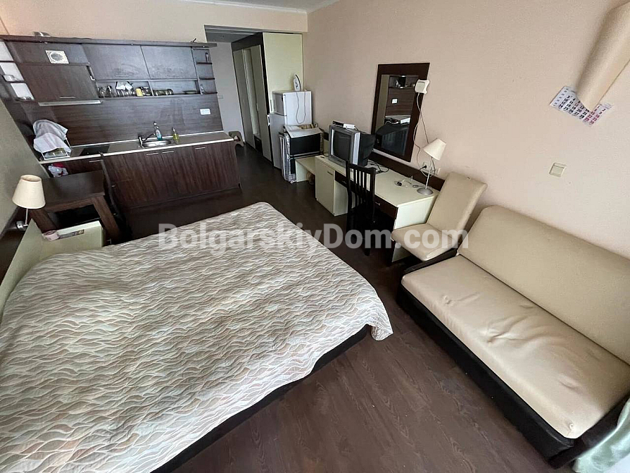 Pierwsza linia brzegowa Swiętego Własa - uzupełnienie katalogu nieruchomości firmy Bułgarski Dom! Jednopokojowy apartament typu studio w kompleksie mieszkalnym Grand Hotel Sveti Vlas w przystępnej cenie. Drugie piętro mieszkalne kompleksu, dobry układ i niesamowity widok na morze z balkonu - bezpośredni, otwarty krajobraz. Mieszkanie jest dobrze wyposażone: meble i sprzęt AGD właściciele pozostawiają w prezencie. Przestrzeń - 44 mkw., doskonała opcja na wynajem lub na wakacje.