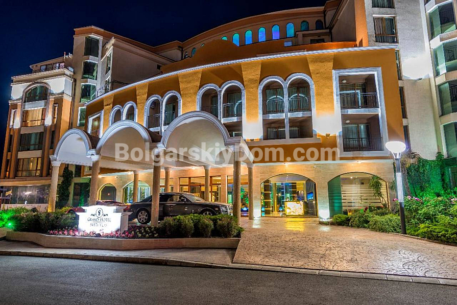 Grand Hotel Sveti Vlas jest otwarty przez cały rok i znajduje się na skraju wybrzeża, pięćdziesiąt metrów od plaży. Strefa relaksu na złotym piasku jest prywatna i wyposażona zarówno dla dzieci, jak i dorosłych. Kompleksowa infrastruktura lokalna: restauracje, spa, tereny sportowe, zewnętrzne jacuzzi, namioty i nie tylko.
