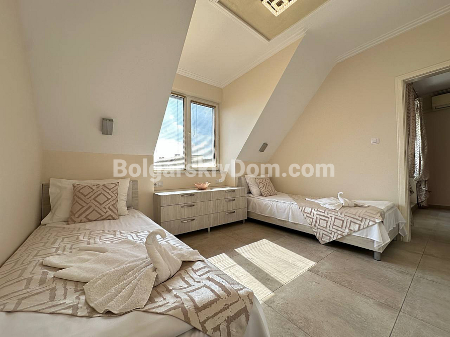 Nieruchomość w kompleksie mieszkaniowym Sea Dreams, czterysta metrów od morza - gotowa do sprzedaży! W Słonecznym Brzegu, w pobliżu dzielnicy Kamelia, do sprzedaży jest trzypokojowe mieszkanie o powierzchni 81 mkw.. Pokoje, korytarz i łazienka są w pełni umeblowane, sprzęt AGD jest zainstalowany i pozostaje w sprzedaży, kuchnia znajduje się w osobnej wnęce, a duży otwarty taras jest doskonałym miejscem do relaksu i kontemplacji otoczenia. Szóste, najbardziej oddalone piętro mieszkalne.
