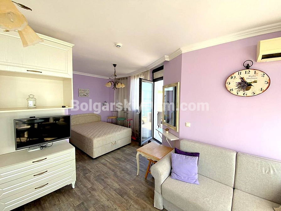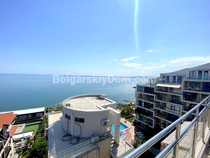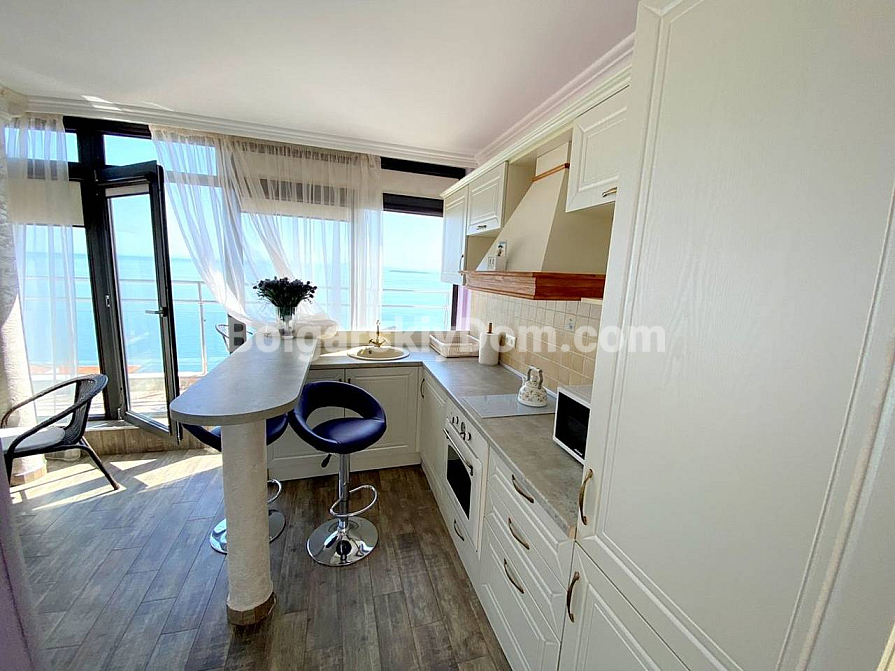 Na sprzedaż od agencji Bolgarskiy Dom ekskluzywny apartament, który znajduje się w kompleksie mieszkaniowym Dolce Vita 2 na siódmym piętrze. Nieruchomość jest nie tylko w doskonałym stanie mieszkalnym, ale ma także wspaniały panoramiczny widok na morze. Jego powierzchnia wynosi 85 metrów kwadratowych i znajduje się zaledwie 50 metrów od brzegu morza. Co ciekawe, pierwotnie było to mieszkanie z jedną sypialnią, jednak zdecydowano się połączyć je w studio, co stworzyło niepowtarzalny i niecodzienny układ. Okrągły, ogromny taras na całym obwodzie apartamentu pozwala cieszyć się panoramicznym widokiem na morze i otaczającą przyrodę. Jest to idealne miejsce do wypoczynku i rekreacji na świeżym powietrzu. Całe wnętrze, które widzicie na zdjęciu, pozostaje niezmienione dla nowych właścicieli.