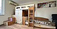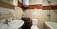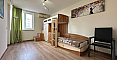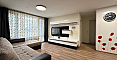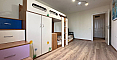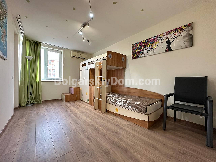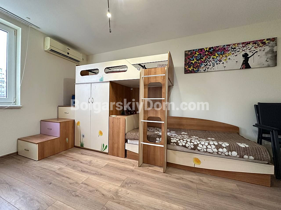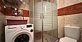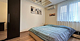 W głównej sypialni znajduje się duże łóżko oraz wydzielona strefa do pracy. Druga sypialnia została urządzona jako pokój dziecięcy. Mieszkanie posiada dwie łazienki: w jednej jest wanna, w drugiej kabina prysznicowa. Dodatkowo jest pralka.