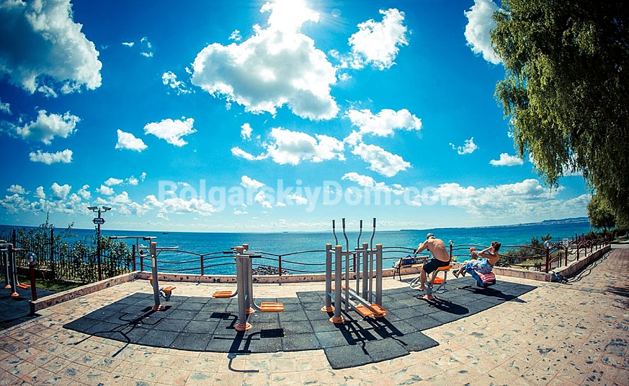 Kompleks Marina View Fort Beach znajduje się w malowniczej okolicy, w otoczeniu zielonych lasów, na wzniesieniu, skąd roztaczają się zapierające dech w piersiach widoki na zatokę Słonecznego Brzegu i stare miasto Nesebyr. Położony zaledwie 50 metrów od morza, łączy w sobie czyste morskie i górskie powietrze, tworząc idealne warunki do wypoczynku i zamieszkania. Kompleks posiada rozległy teren z wieloma udogodnieniami, w tym baseny, restauracje, siłownię, sklepy oraz inne obiekty infrastruktury, które zapewniają komfortowy pobyt, długoterminowe zamieszkanie oraz wysokie zainteresowanie wśród najemców.