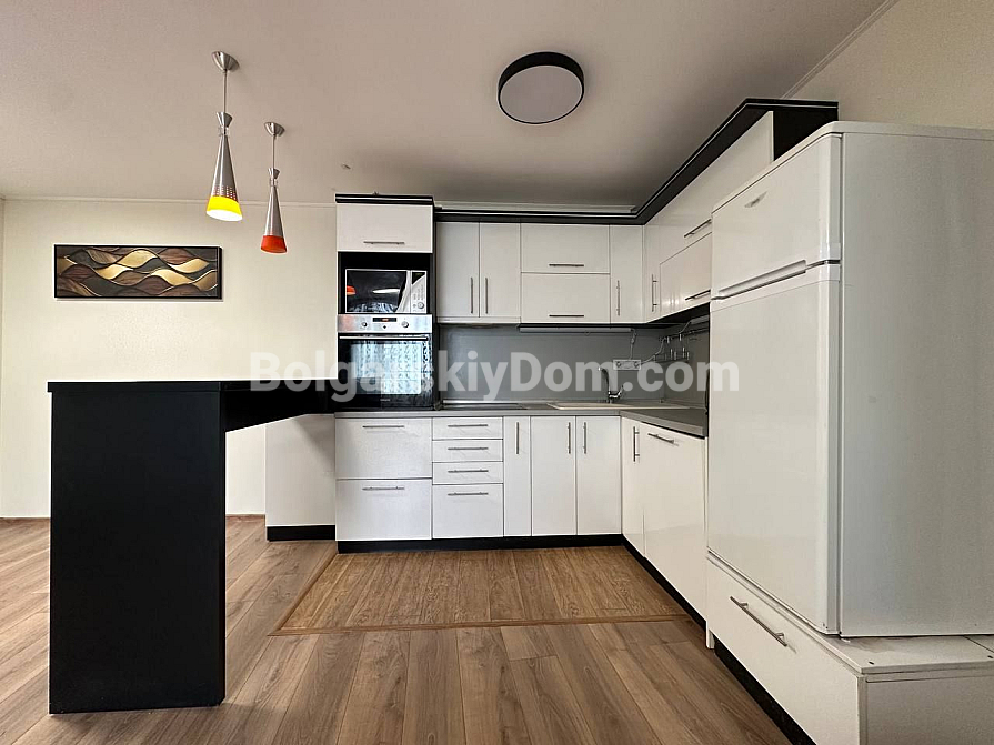 Przestronny salon jest umeblowany w komfortowe meble i połączony z kuchnią, wyposażoną we wszystkie niezbędne urządzenia. Ze wszystkich pokoi jest wyjście na duży taras, gdzie można cieszyć się świeżym powietrzem i pięknym widokiem na góry.