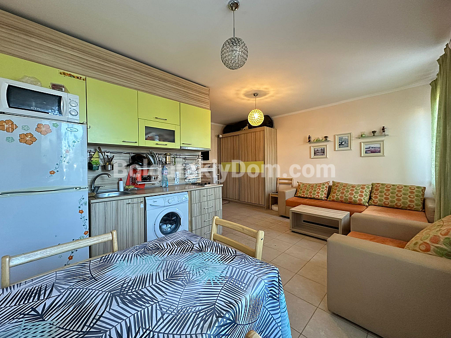 Przedstawiamy Państwu umeblowane studio o powierzchni 33 mkw w kompleksie „Sveti Nikola”. Ten przytulny apartament na parterze łączy w sobie komfortową przestrzeń i przystępną cenę. Jasne i przemyślane wnętrze nie wymaga dodatkowych inwestycji, co pozwala od razu cieszyć się pobytem. Pomimo braku balkonu układ przemyślany jest pod kątem maksymalnej wygody i funkcjonalności.