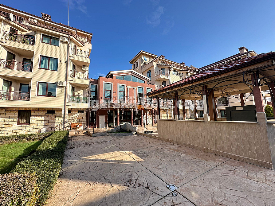 Kompleks Sveti Nikola położony jest 2,5 km od morza, w spokojnej części kurortu, który jest idealnym miejscem na relaksujące wakacje i życie. Wokół kompleksu znajduje się cała niezbędna infrastruktura: sklepy spożywcze, kawiarnie i przystanki komunikacyjne, zapewniające łatwy dostęp do morza i udogodnień Słonecznego Brzegu. Przytulna atmosfera i wygodna infrastruktura.