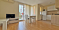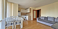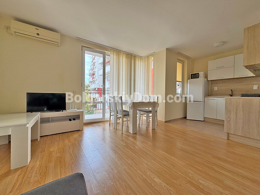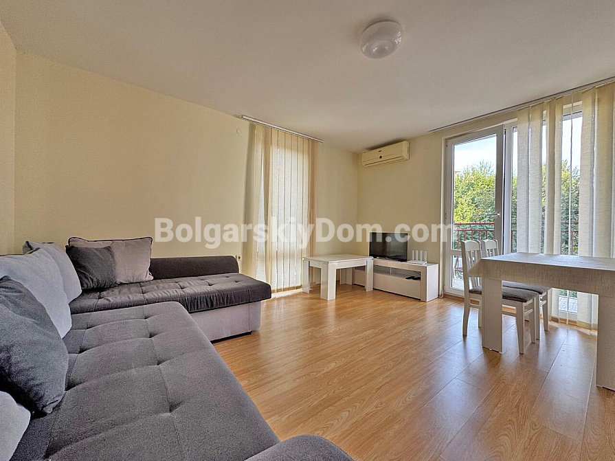 Przestronne dwupokojowe mieszkanie o powierzchni 70 m² znajduje się na drugim piętrze budynku z windą. Wygodny układ obejmuje przedpokój, jasny salon z częścią kuchenną i jadalnianą, oddzielną sypialnię, łazienkę z kabiną prysznicową oraz balkon z widokiem na zielony teren kompleksu. Mieszkanie oferowane jest z meblami i sprzętem AGD, co pozwala od razu się wprowadzić i cieszyć komfortem. Idealnie nadaje się zarówno na wakacje, jak i do całorocznego zamieszkania.