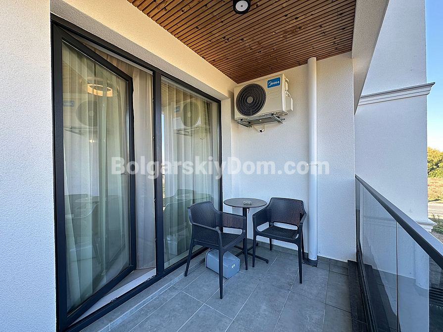 Kompleks znajduje się w zielonej części kurortu: z okien roztacza się widok na park krajobrazowy z alejkami do nordic walking, a na plażę można dojść spacerem w 12 minut. W odległości 5 minut pieszo znajduje się przystanek autobusowy z połączeniami do centrum z restauracjami i supermarketami. Okolica ceniona jest za ciszę, brak ruchu turystycznego oraz bliskość do alei pieszej prowadzącej do zatoki Słonecznego Brzegu. Tutaj życie płynie w rytmie wakacji, nawet jeśli zostajesz przez cały rok.
