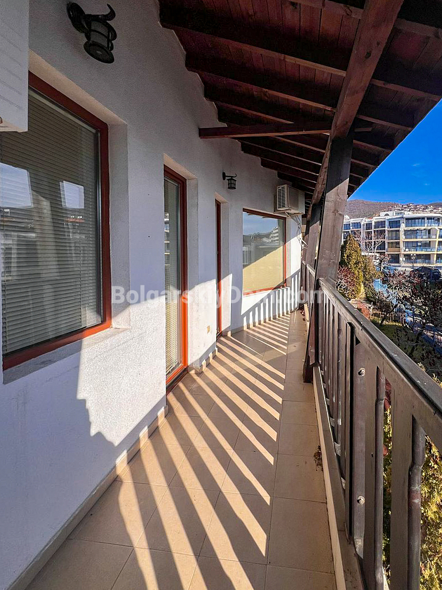 Na sprzedaż piękne dwupokojowe mieszkanie z malowniczym widokiem na morze w kompleksie „Top”, który znajduje się w bezpośredniej bliskości słynnego portu jachtowego „Marina Dinevi” w nadmorskiej miejscowości Święty Włas. Przestrzeń mieszkalna zawiera wszystko, co niezbędne do komfortowego życia: mieszkanie sprzedawane jest z meblami i sprzętem, gotowe do użytku zarówno na okresowy, jak i stały pobyt. Rozkład wnętrza obejmuje przedpokój, przestronny i jasny salon z częścią kuchenną i jadalnią, przytulną sypialnię, łazienkę z kabiną prysznicową i toaletą, a także taras z częściowym widokiem na morze i góry.