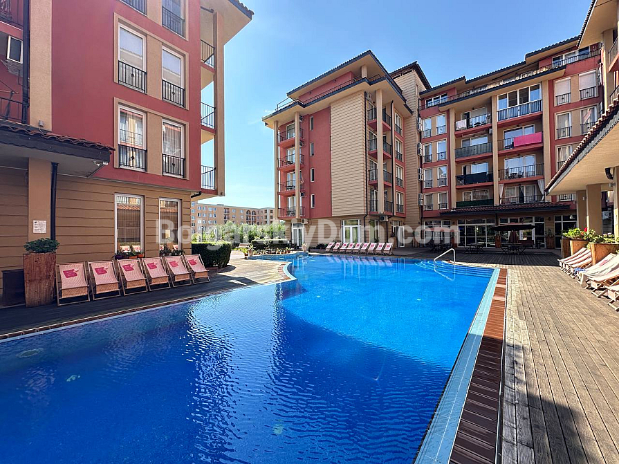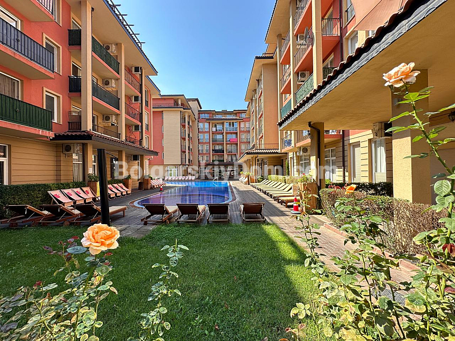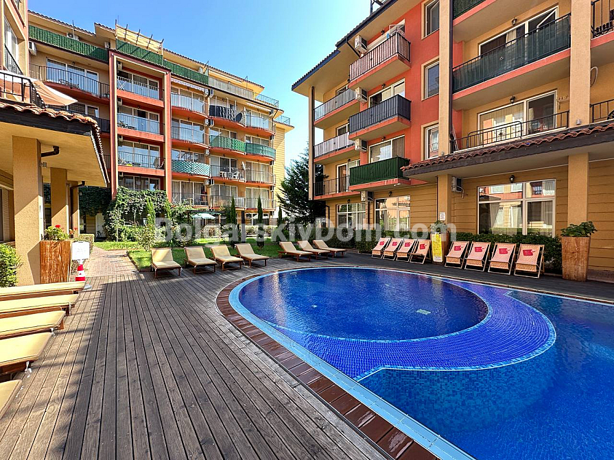 Sunny View Central znajduje się w spokojnej centralnej części Słonecznego Brzegu, zaledwie 500 metrów od plaży Cocoa, otoczonej trawnikiem z palmami, gdzie spacerują mieszkańcy. Na terenie kompleksu znajdują się trzy baseny – jeden z płytką strefą dla dzieci, siłownia z urządzeniami, spa z sauną i pokojami masaży – wszystko na miejscu, a także restauracja z tarasem i bar przy wodzie. Całodobowa ochrona, parking pod monitoringiem wideo oraz plac zabaw dla dzieci z karuzelami, który jest zajęty przez maluchy aż do wieczora. Zaledwie kilka kroków od supermarketu Janet i promenady z urokliwymi starymi uliczkami – miejsce wygodne zarówno do wypoczynku, jak i do zarabiania na wynajmie.
