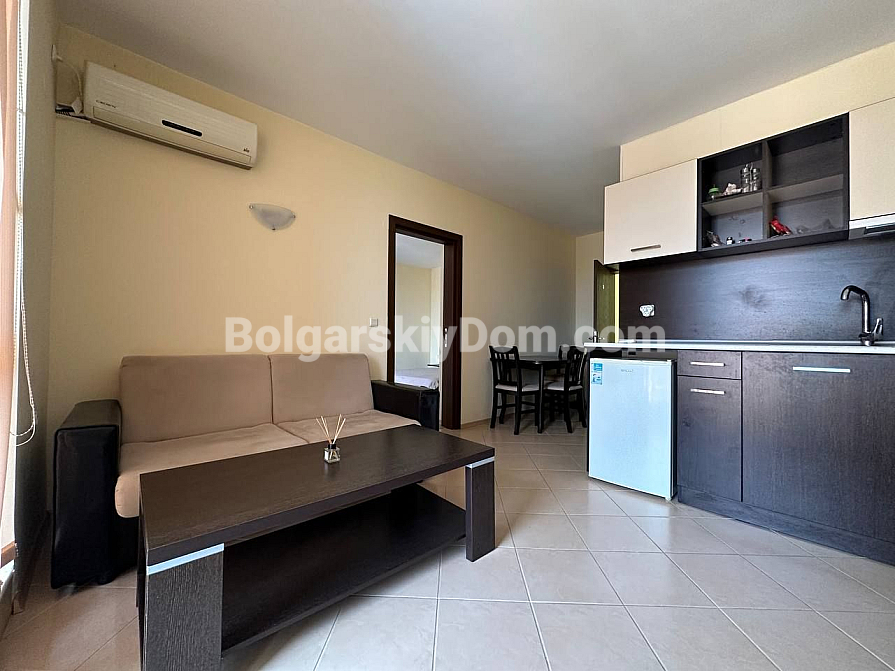 Bułgarski Dom wybiera dla Ciebie tylko płynne i godne uwagi oferty! Niedrogie i praktyczne rozwiązanie nad morzem - doskonała opcja zarówno na wypoczynek, jak i na wynajem: umeblowane dwupokojowe mieszkanie o powierzchni 59 mkw położone na piątym piętrze kompleksu mieszkalnego Sunset Beach 3, który znajduje się zaledwie 700 metrów od plaży. Układ mieszkania jest standardowy, a więc uniwersalny - składa się z jasnego salonu z kuchnią i jadalnią, osobnej sypialni, łazienki z toaletą oraz tarasu. Wnętrze jest proste, ale funkcjonalne, znajdują się w nim podstawowe meble, co sprawia, że apartament nadaje się do natychmiastowego użytku, bez konieczności dodatkowych inwestycji.