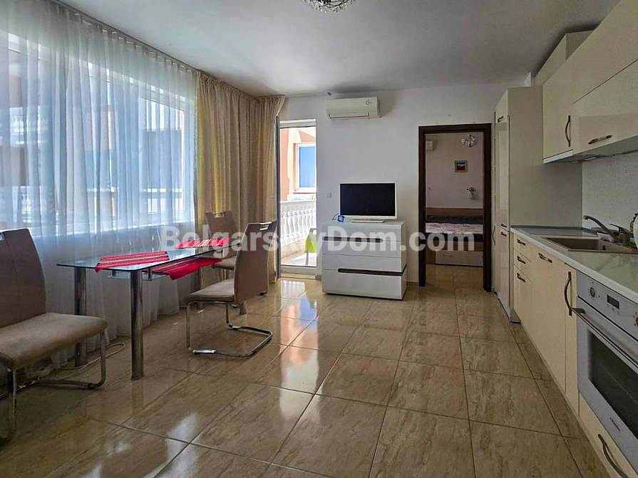 Świeża oferta od agencji Bolgarskiy Dom — mieszkanie z jedną sypialnią w całorocznym kompleksie z basenem, zaledwie kilka minut od plaży i centrum kurortu. Mieszkanie znajduje się na 3 piętrze z windą, o powierzchni 55 m². Układ obejmuje przedpokój, salon z kuchnią, osobną sypialnię, łazienkę oraz balkon. Mieszkanie jest w pełni umeblowane i wyposażone, z czystym, nowoczesnym wnętrzem. Doskonały stan — gotowe do zamieszkania lub wynajmu od zaraz, bez strat czasowych i finansowych.