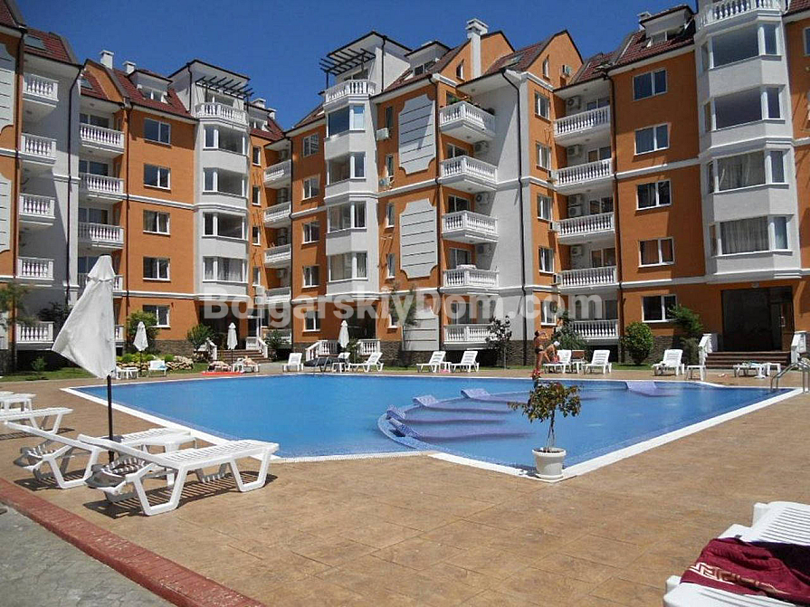 Kompleks mieszkalny Sea Diamond to nowoczesny budynek z zadbanym terenem, basenem, strefami wypoczynkowymi, ochroną i parkingiem. Okolica jest aktywna, wygodna i tętniąca życiem — w pobliżu sklepy, kawiarnie, przystanki, apteki i szpital. Do plaży kilka minut pieszo, do starego miasta Nessebar około 15 minut. Kompleks jest w pełni ukończony, posiada Akt 16, a opłata serwisowa jest standardowa dla kompleksów tej klasy: 12 euro.