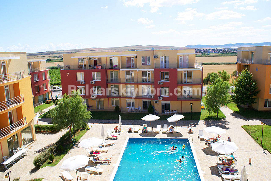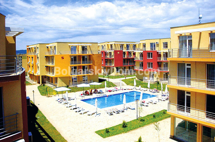 Mieszkanie znajduje się w kompleksie Sunny Day 5 w Słonecznym Brzegu. Osiedle posiada zamknięty teren z całoroczną ochroną i parkingiem. Kompleks jest zadbany, z zieloną strefą i basenem. Do morza można dojść w kilka minut, w pobliżu znajduje się przystanek autobusowy. Opłata eksploatacyjna wynosi jedynie 580 euro rocznie. Świetna budżetowa propozycja w zamieszkałym kompleksie z możliwością całorocznego pobytu.