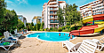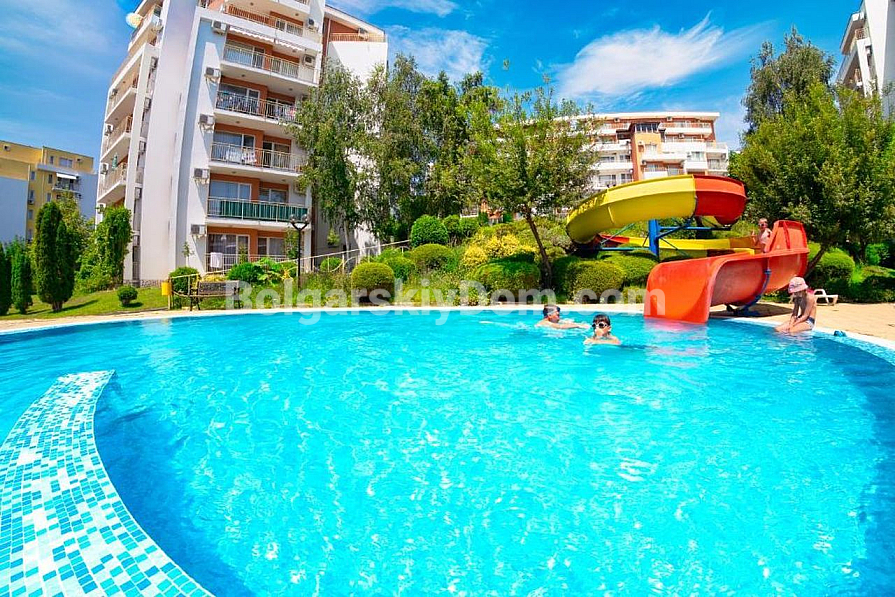 Kompleks mieszkalny Crown Fort Club znajduje się zaledwie 150 metrów od plaży i w porównaniu z sąsiednimi osiedlami posiada dość rozbudowaną infrastrukturę: są tu restauracje, sklepy spożywcze, siłownia, sauna, korty tenisowe, bilard, mini-golf oraz parking. Teren jest strzeżony, działa całodobowa ochrona. W pobliżu znajduje się przystanek komunikacji miejskiej, supermarket oraz dziesiątki innych udogodnień. Opłata eksploatacyjna: 14,5 €.