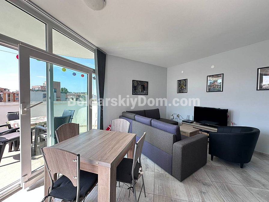 Nowość w katalogu – dostępna w sprzedaży! W samym centrum Słonecznego Brzegu oferujemy przestronne mieszkanie trzypokojowe o powierzchni 97 m² z nowoczesnym wnętrzem, umeblowaniem i pełnym wyposażeniem AGD. Jasne, niezależne pokoje, dwie oddzielne sypialnie z klimatyzacją oraz duża kuchnia połączona z jadalnią tworzą przytulną przestrzeń do życia. Mieszkanie jest w doskonałym stanie i w pełni gotowe do zamieszkania. Opłata eksploatacyjna: 12 € za m², tylko 600 metrów od plaży. Te i inne zalety – wyłącznie dla klientów Bolgarskiy Dom. Skontaktuj się z naszym agentem!