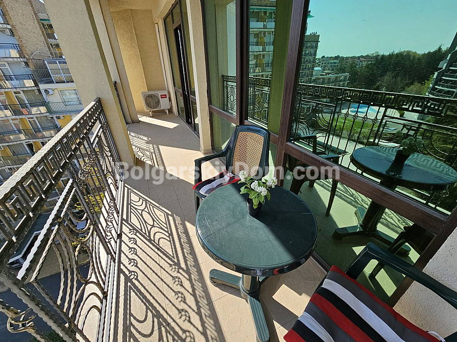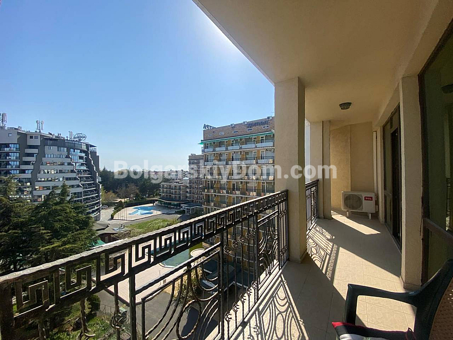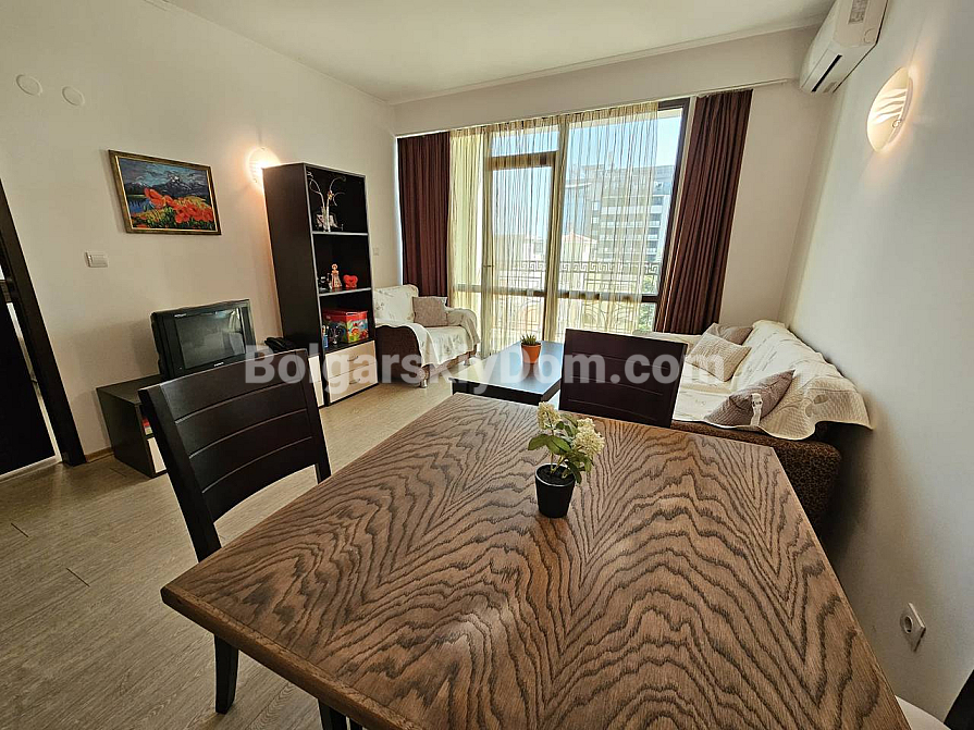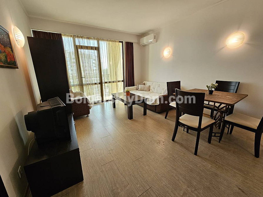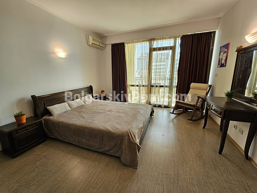 Nowość w katalogu Bolgarskiy Dom: dwupokojowe mieszkanie o powierzchni 83 m² na siódmym piętrze kompleksu Babylon w Słonecznym Brzegu. Przestrzeń jest maksymalnie ergonomiczna: jasny nowoczesny design, pełnowymiarowy hall wejściowy, przestronny salon z wyjściem na taras z widokiem na morze oraz duża sypialnia zapewniająca komfortowy wypoczynek. Przestronna łazienka z wanną w standardowym rozmiarze. Mieszkanie jest w pełni umeblowane, wyposażone w sprzęt AGD i gotowe do zamieszkania. Zadzwoń, aby dokonać zakupu — praktyczne rozwiązanie do zamieszkania lub pod wynajem.