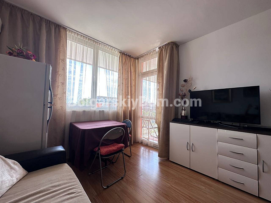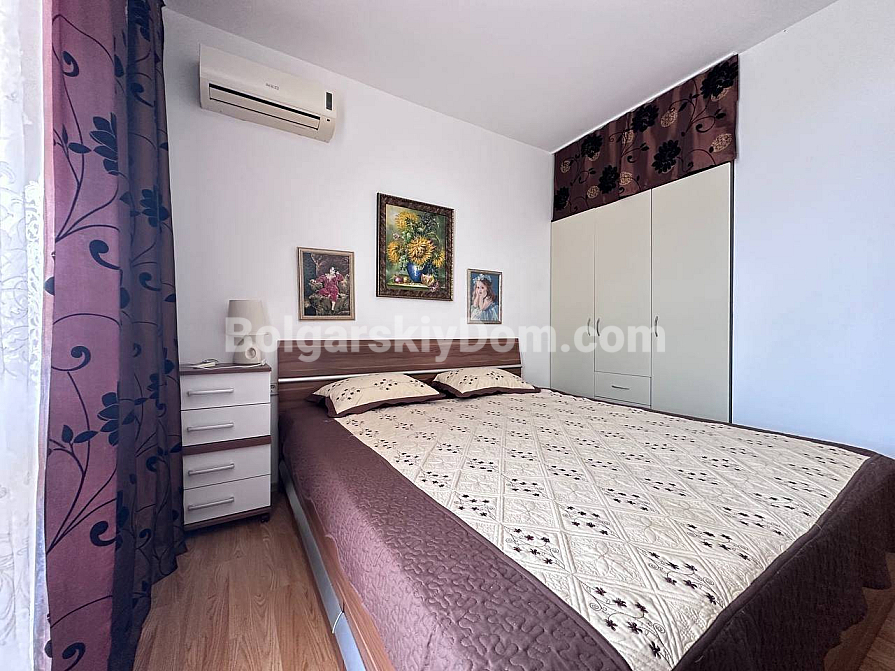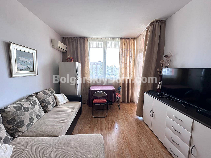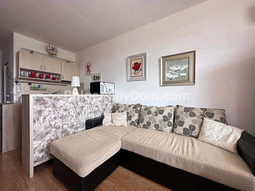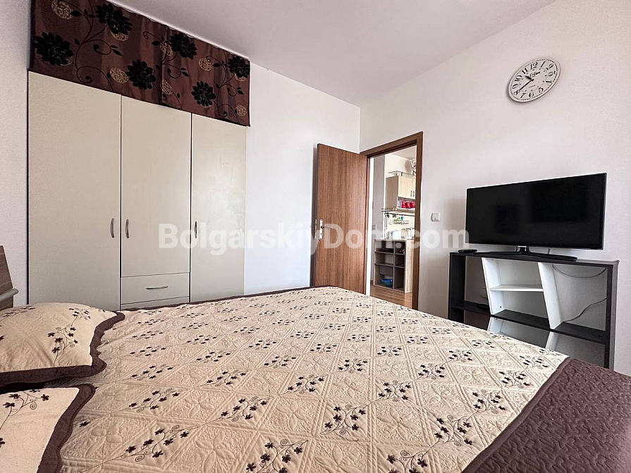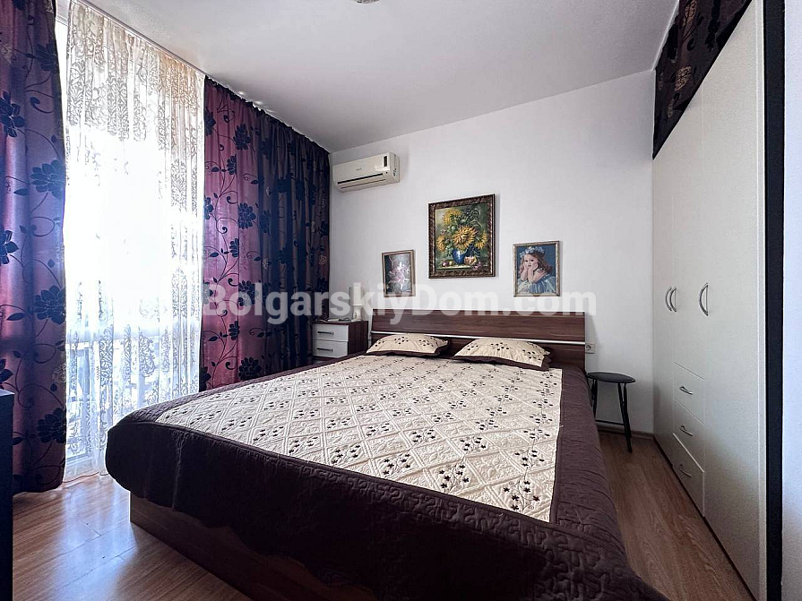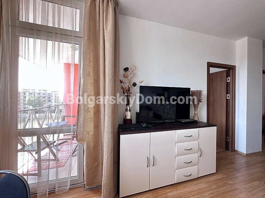 Widok na morze i doskonała cena! Bolgarskiy Dom oferuje trzypokojowe mieszkanie o powierzchni 59 m² na piątym piętrze kompleksu Gerber 3 w Słonecznym Brzegu. W pełni umeblowane i wyposażone w sprzęt AGD, z przestronnym balkonem, mieszkanie jest gotowe do zamieszkania. Przemyślany układ obejmuje salon z aneksem kuchennym, dwie sypialnie oraz łazienkę. Akt 16 oraz indywidualne liczniki wody i prądu zapewniają przejrzyste koszty. Całoroczna działalność kompleksu sprawia, że jest idealny do stałego zamieszkania lub wynajmu przez wszystkie cztery sezony.