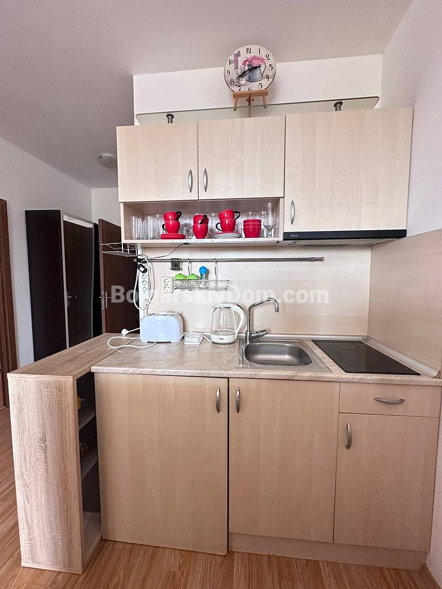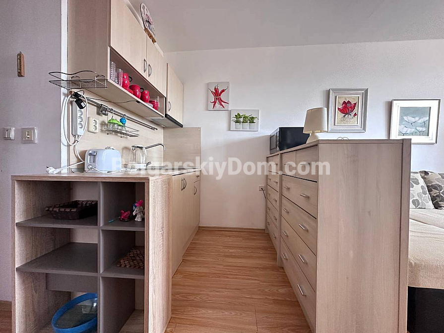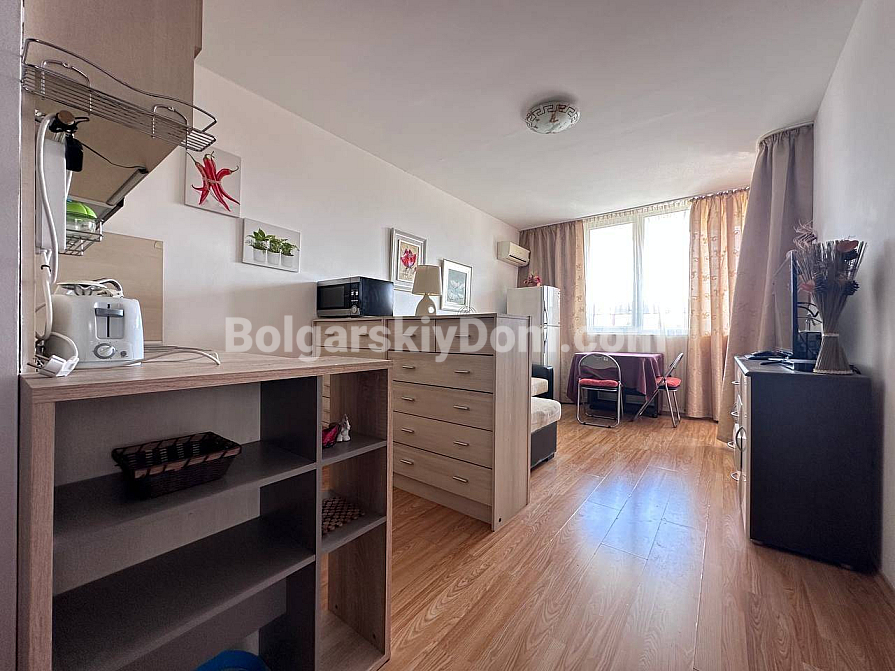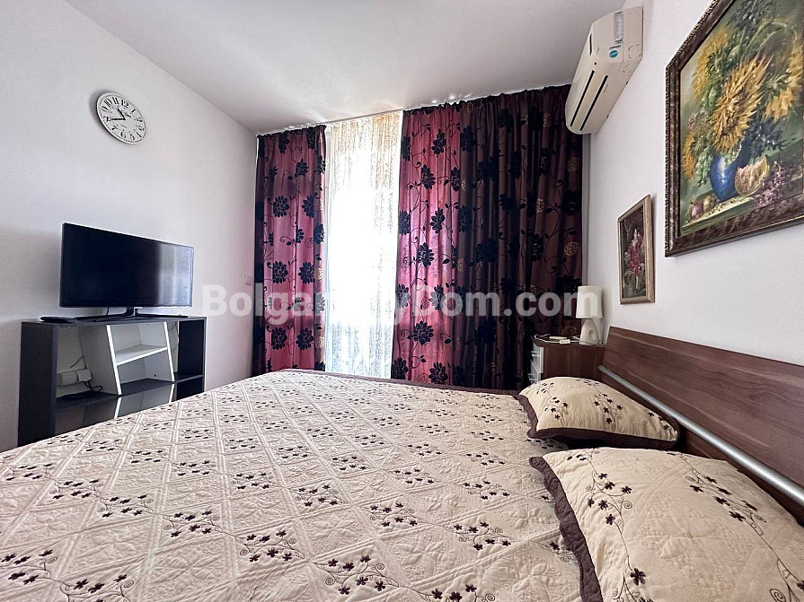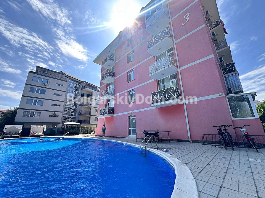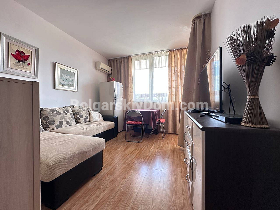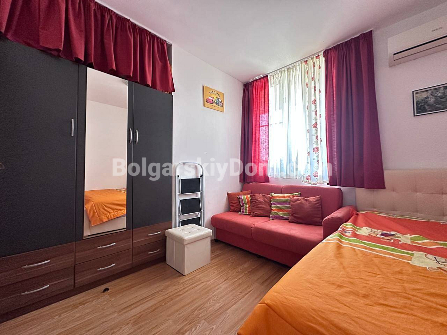 Widok na morze i doskonała cena! Bolgarskiy Dom oferuje trzypokojowe mieszkanie o powierzchni 59 m² na piątym piętrze kompleksu Gerber 3 w Słonecznym Brzegu. W pełni umeblowane i wyposażone w sprzęt AGD, z przestronnym balkonem, mieszkanie jest gotowe do zamieszkania. Przemyślany układ obejmuje salon z aneksem kuchennym, dwie sypialnie oraz łazienkę. Akt 16 oraz indywidualne liczniki wody i prądu zapewniają przejrzyste koszty. Całoroczna działalność kompleksu sprawia, że jest idealny do stałego zamieszkania lub wynajmu przez wszystkie cztery sezony.