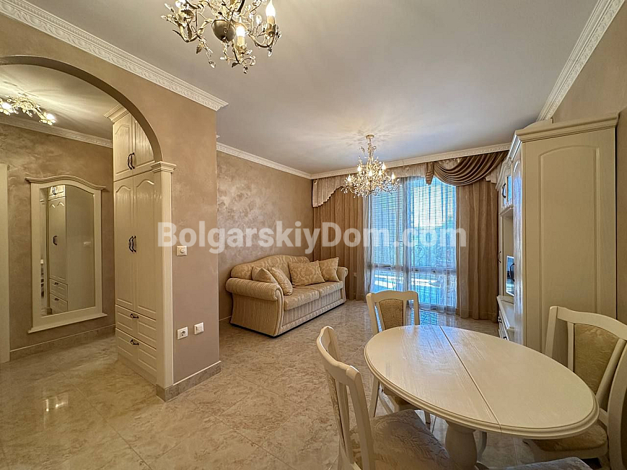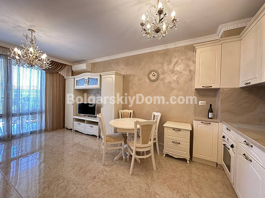 Gorąca oferta od Bolgarskiy Dom! Na sprzedaż stylowe dwupokojowe mieszkanie w elitarnym kompleksie Esteban w Nessebar, zaledwie 300 metrów od morza. Powierzchnia nieruchomości wynosi 57 m², mieszkanie znajduje się na 4. piętrze sześciopiętrowego budynku. Przemyślany układ: przytulny salon z aneksem kuchennym, sypialnia, łazienka oraz duży balkon z widokiem na basen. Mieszkanie wyposażone w ogrzewanie podłogowe, wnętrza utrzymane w jasnych tonach, wysokiej jakości tekstylia, meble i sprzęt AGD. Atmosfera w pełni gotowa do komfortowego zamieszkania. Zadzwoń, aby uzyskać szczegóły i umówić się na oglądanie!