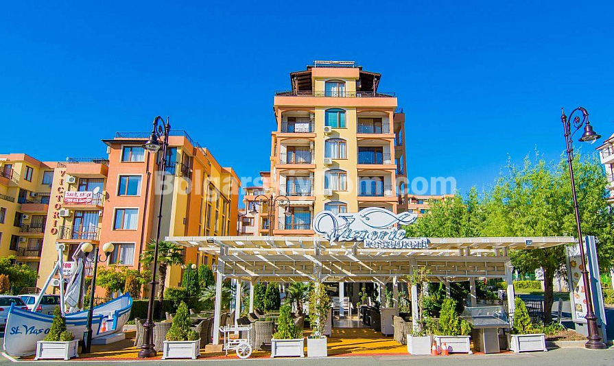 Victorio 3 znajduje się w prestiżowej lokalizacji w Świętym Własie, zaledwie 200 metrów od plaży, pomiędzy Jurta a mariną Dinevi. Kompleks oferuje zadbany teren z basenem, parkingiem i ochroną, a opłata eksploatacyjna w wysokości 10 EUR za m² rocznie zapewnia porządek i jest niska w porównaniu z sąsiednimi osiedlami. Do tętniącej życiem promenady z barami i sklepami można dojść w 5 minut.
