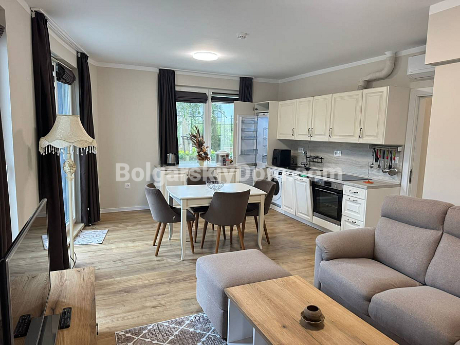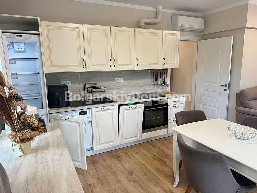 Żyj z klasą nad morzem i zakończ poszukiwania na tym apartamencie! Agencja Nieruchomości Bulgarian House przedstawia designerską nieruchomość o powierzchni 98 m² na pierwszym piętrze kompleksu Belisiti w Ravdzie. To trzypokojowe mieszkanie z nowoczesnymi meblami i sprzętem zostało stworzone z myślą o komforcie: przestronny salon z aneksem kuchennym, dwie sypialnie, łazienka i taras. Estetyczne wnętrze z akcentami w jasnych tonach, doskonały stan i pełen komfort całej przestrzeni zapewniają wysoki poziom stylu. Zamknięty teren i stylowe części wspólne dodają prestiżu, a niska roczna opłata 892 € sprawia, że zakup jest opłacalny zarówno do zamieszkania, jak i inwestycji.
