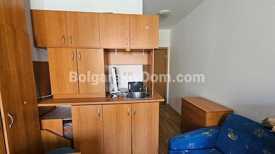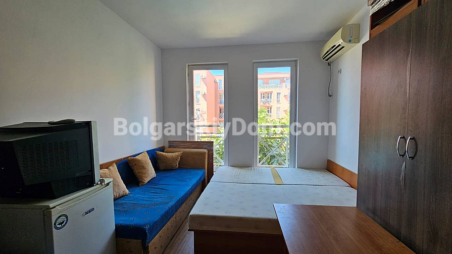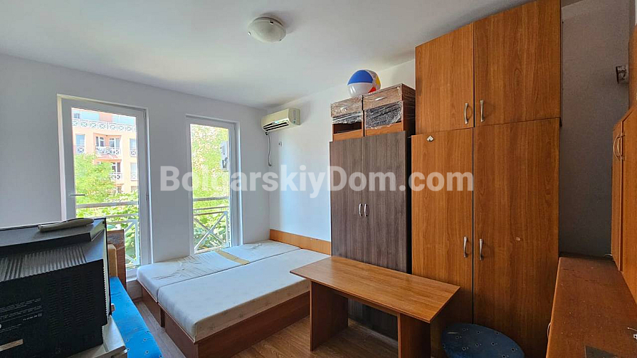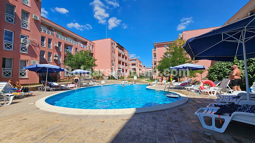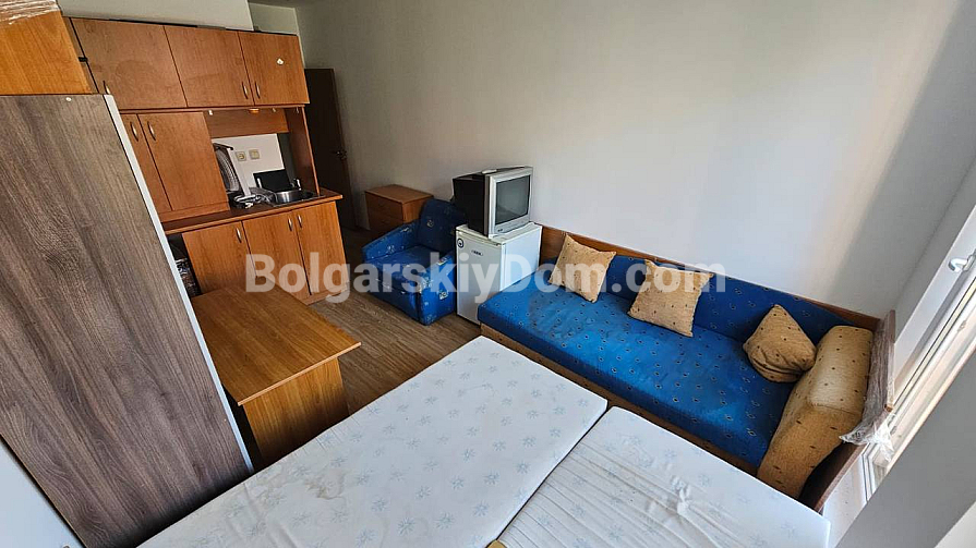 TOP-cena! Na sprzedaż jasne i przytulne studio o powierzchni 26 m² w popularnym kompleksie w pobliżu Słonecznego Brzegu. Mieszkanie znajduje się na drugim piętrze i jest w pełni gotowe do zamieszkania lub wynajmu. Wyposażone jest w podstawowy sprzęt (mini-lodówka, telewizor, bojler, klimatyzacja i kuchenka) oraz w wiele mebli zapewniających komfortowy wypoczynek i mieszkanie. Brak tarasu. Okna wychodzą na dziedziniec z basenem.