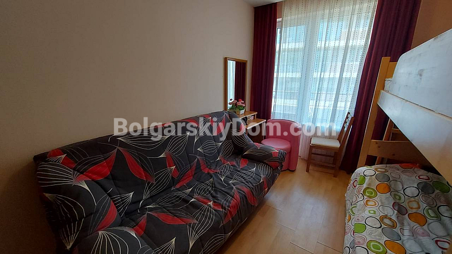 Chwyć tę nowość z widokiem na morze i już dziś umów się na prezentację! Przestronne dwupokojowe mieszkanie o powierzchni 75 m² znajduje się w kompleksie Privilege Fort w kurorcie Elenite. Lokal położony jest na 3. piętrze i oferowany jest przez właścicieli nowym nabywcom wraz z meblami i sprzętem — wszystko w dobrym stanie. Układ jest praktyczny i obejmuje przedpokój, salon z częścią kuchenną i jadalnianą, osobną sypialnię, łazienkę oraz balkon z widokiem na morze. Mieszkanie jest jasne i przytulne, a wnętrze nie wymaga dodatkowych nakładów.