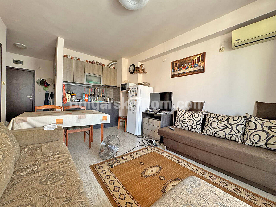 Kompleks mieszkalny Święta Sofia, w którym znajduje się ten apartament, położony jest w spokojnej części Słonecznego Brzegu, zaledwie 450 metrów od morza. Teren kompleksu jest zamknięty i zadbany, zapewnia wysoki poziom prywatności i bezpieczeństwa. Do dyspozycji mieszkańców jest odkryty basen, parking oraz winda. Dzięki swojej lokalizacji kompleks ma łatwy dostęp do wszystkich udogodnień niezbędnych do wygodnego życia, pozostając jednocześnie w cichej i malowniczej okolicy. Niewielka roczna opłata eksploatacyjna w wysokości 8 € za m² czyni tę ofertę jeszcze bardziej atrakcyjną zarówno jako inwestycję, jak i do użytku własnego.