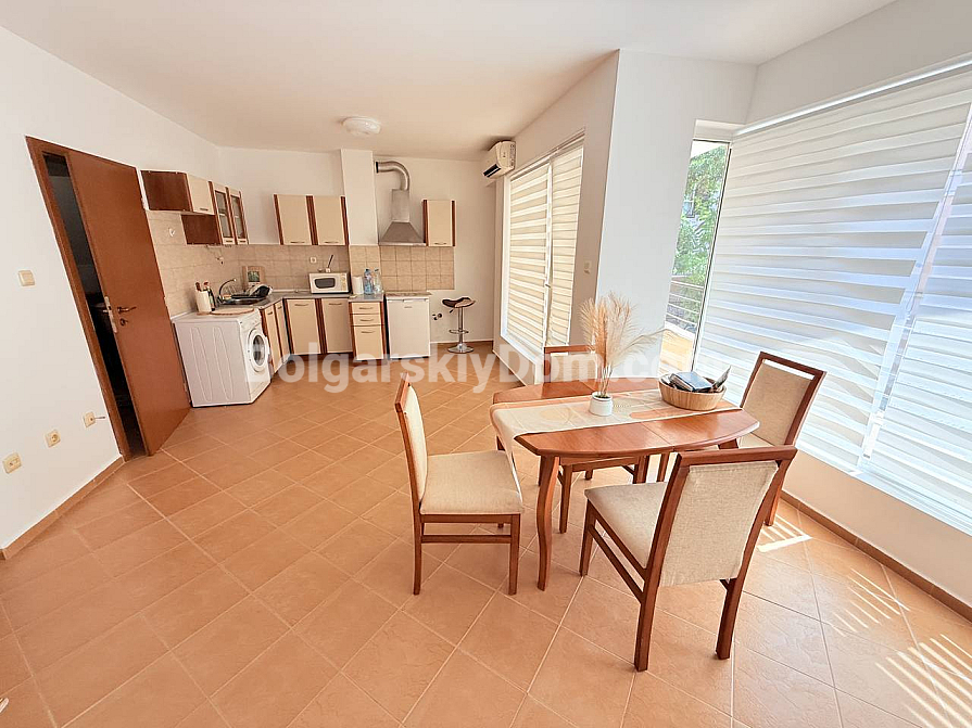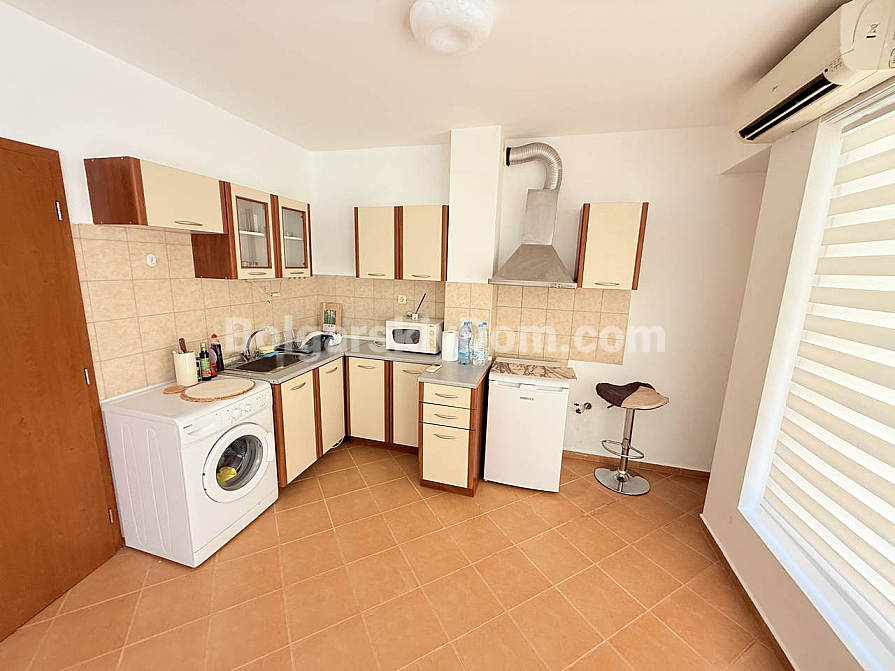Kompleks Solis znajduje się w jednej z najbardziej poszukiwanych części Słonecznego Brzegu. To właśnie tutaj tętni życie kurortu, a jednocześnie zachowana jest przytulna atmosfera. To doskonała inwestycja w nieruchomość, ponieważ roczna opłata za windę, sprzątanie i oświetlenie klatek schodowych wynosi tylko 150 euro. To mieszkanie jest gotowym rozwiązaniem dla osób szukających lokum na wakacje, stałego zamieszkania lub dochodowej inwestycji pod wynajem.