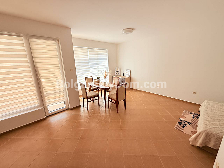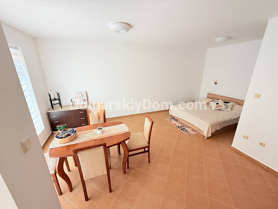 Twoje mieszkanie pod klucz już czeka na Ciebie w kompleksie Solis! Nowa oferta od Bolgarskiy Dom – to przestronne mieszkanie typu studio o powierzchni 46 m², położone na drugim piętrze budynku z windą, co zapewnia łatwy dostęp i jest dużą zaletą dla rodzin z dziećmi lub osób starszych. Układ obejmuje przedpokój, jasny pokój z aneksem kuchennym, osobną sypialnię, łazienkę i balkon. Mieszkanie jest w pełni umeblowane i wyposażone we wszystkie sprzęty AGD, dzięki czemu nie musisz się o nic martwić. Oddzielne liczniki prądu i wody pozwalają na pełną kontrolę kosztów.