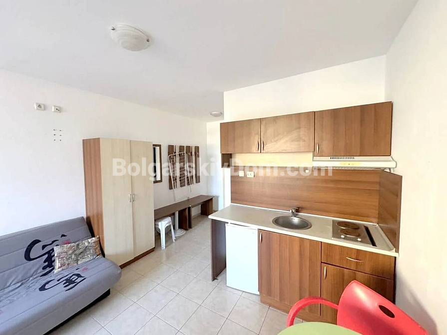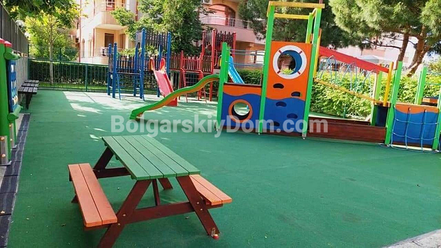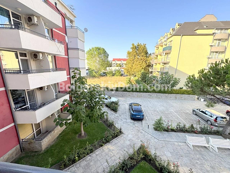 Mieszkanie znajduje się w kompleksie mieszkalnym Rose Residence, położonym w spokojnej części Słonecznego Brzegu, zaledwie 600 metrów od morza. Kompleks został zbudowany według wysokich standardów i oferuje właścicielom basen, zadbany dziedziniec, ochronę i parking – standardowy, lecz często w pełni wystarczający zestaw udogodnień. Taka lokalizacja zapewnia łatwy dostęp do całej miejskiej infrastruktury, w tym restauracji i sklepów. Roczna opłata eksploatacyjna wynosi 12 euro za metr kwadratowy.