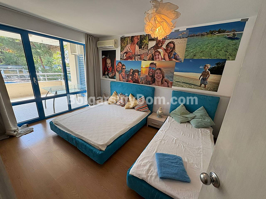 Kompleks Excelsior to oaza komfortu, położona zaledwie 200 metrów od morza. Na jego zamkniętym terenie znajduje się wszystko, co potrzebne do pełnego życia i wypoczynku: duży basen dla dorosłych i dzieci, plac zabaw, siłownia na świeżym powietrzu, mini-market, restauracja oraz zadbane zielone tereny spacerowe. Dla Twojego spokoju i bezpieczeństwa zapewniono całodobową ochronę i monitoring wideo, a także wsparcie techniczne. Kompleks idealnie nadaje się dla osób szukających wysokiej jakości mieszkania w spokojnym miejscu, ale jednocześnie w zasięgu spaceru od całej niezbędnej infrastruktury kurortu. Opłata eksploatacyjna – 10 euro, odległość do morza – 200 metrów, około 5 minut pieszo.