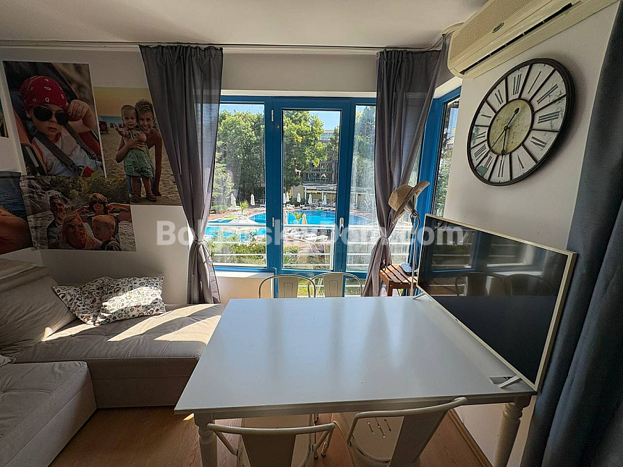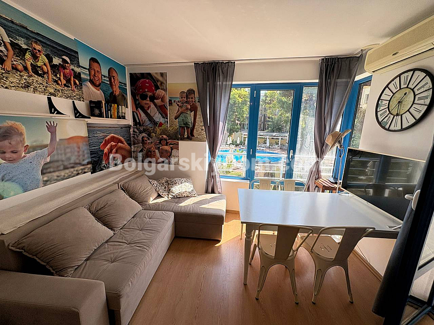 Zespół agentów Bolgarskiy Dom z przyjemnością przedstawia przestronne dwupokojowe mieszkanie w malowniczym kompleksie Excelsior, położonym na Słonecznym Brzegu. Ten przytulny apartament o powierzchni 71 m² znajduje się na drugim piętrze i jest sprzedawany w pełni umeblowany oraz gotowy do zamieszkania, z całym niezbędnym wyposażeniem i sprzętem AGD, wszystko wliczone w cenę, bez dodatkowych opłat. Otrzymujesz przedpokój, przestronny salon z aneksem kuchennym, przytulną sypialnię z dwoma łóżkami, łazienkę z wanną i toaletą oraz taras z widokiem na basen. Klasyczna opcja na każdy cel: do zamieszkania, wypoczynku czy wynajmu. Czekamy na Twoją wiadomość!