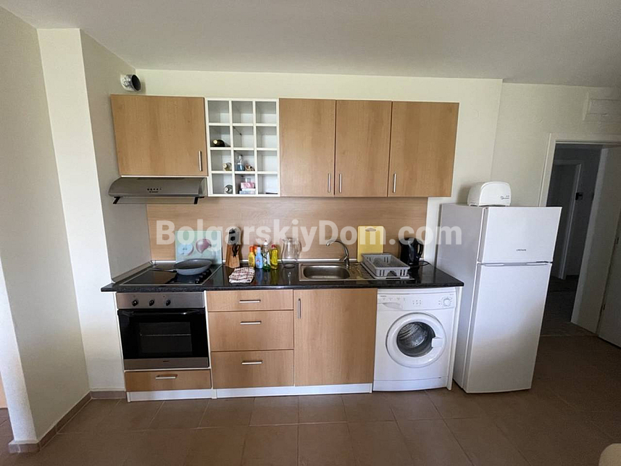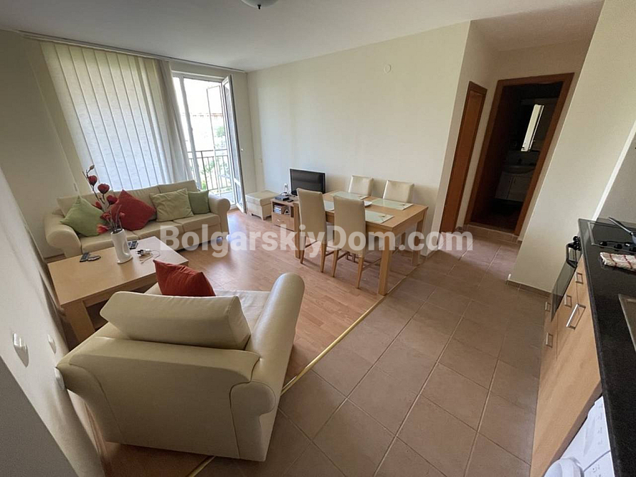 Topowa oferta sprzedaży od Bolgarskiy Dom! W kompleksie Holiday Fort dostępne jest przestronne mieszkanie z dwiema sypialniami, które łączy w sobie idealne połączenie przytulności i funkcjonalności. Apartament o powierzchni całkowitej 68,41 m² znajduje się na trzecim piętrze i posiada dużą tarasę z pięknym widokiem na góry. Mieszkanie jest w bardzo dobrym stanie, w pełni umeblowane i wyposażone we wszystko, co potrzebne: meble wypoczynkowe, aneks kuchenny z okapem, piekarnikiem, lodówką, pralką oraz klimatyzacją.