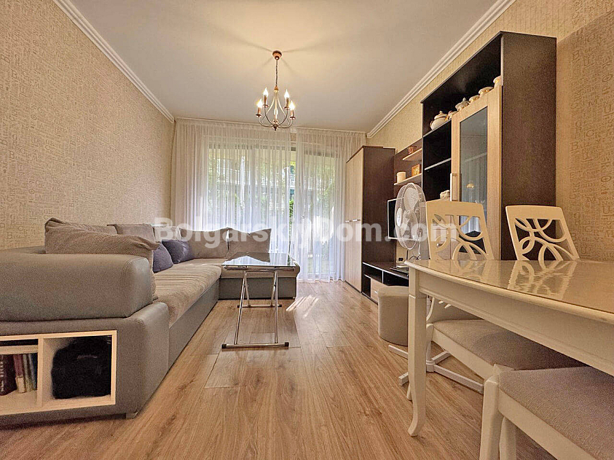 Katalog nieruchomości z rynku wtórnego został uzupełniony – tym razem o kolejny obiekt warty uwagi! W cichej i spokojnej części Słonecznego Brzegu oferowane jest na sprzedaż dwupokojowe mieszkanie, które od razu zachwyca przytulnością i przemyślanymi detalami. Apartament o powierzchni 52 m² znajduje się na parterze i posiada bezpośrednie wyjście do ogrodu w stylu angielskim z trawnikiem i zielonym ogrodzeniem. Nieruchomość jest w pełni umeblowana wysokiej jakości meblami i sprzętem, a szczególnym atutem jest ogrzewanie podłogowe w całym mieszkaniu, w tym w przedpokoju i łazience. Układ: salon z aneksem kuchennym, sypialnia, łazienka z WC i prysznicem oraz przestronny taras.
