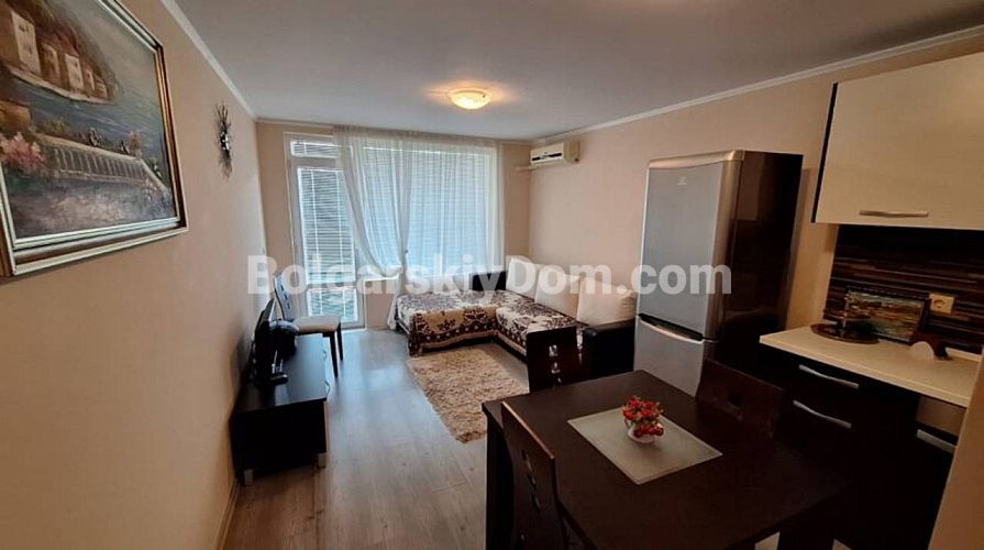 Komfort, przytulność i opłacalna inwestycja — wszystko to znajdziesz w naszej nowej ofercie. Z przyjemnością prezentujemy przyjemne dwupokojowe mieszkanie w kameralnym kompleksie mieszkalnym, położonym w samym sercu kurortu Ravda. Układ apartamentu o powierzchni 62 m² jest klasyczny: przedpokój, jasny salon, osobna sypialnia, łazienka oraz duży taras z widokiem na basen i zieleń. Dzięki wschodniej ekspozycji mieszkanie jest pełne porannego słońca. Wysokiej jakości meble i sprzęt AGD w cenie. Wnętrze w harmonijnych beżowo-brązowych odcieniach tworzy ciepłą i spokojną atmosferę.
