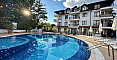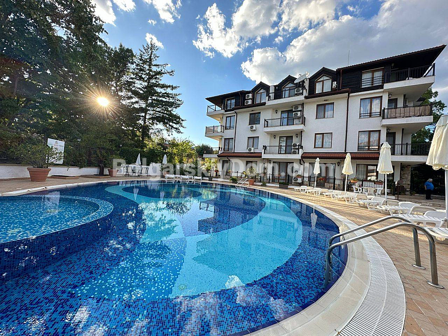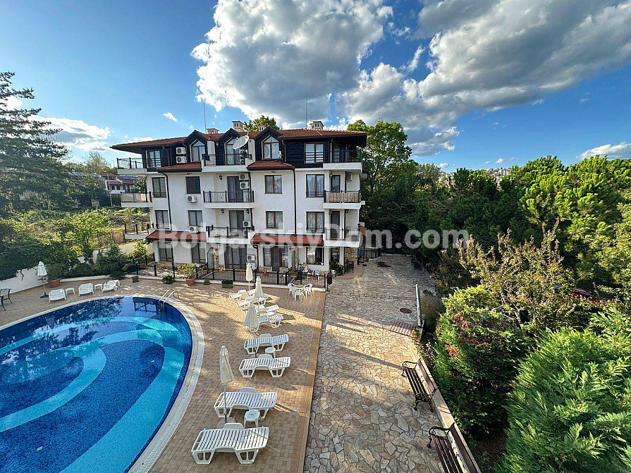Kompleks Sirena, w którym znajduje się apartament, posiada zamknięty i zadbany teren z basenem, leżakami oraz przytulną altaną do wypoczynku. W pobliżu znajduje się zacieniony park. Atmosfera spokoju, przytulności i harmonii. Okolica jest cicha, zielona i niezwykle piękna – idealna na rajski wypoczynek nad Morzem Czarnym. Uwaga – bonus! W cenie zawarte jest miejsce parkingowe w garażu podziemnym.