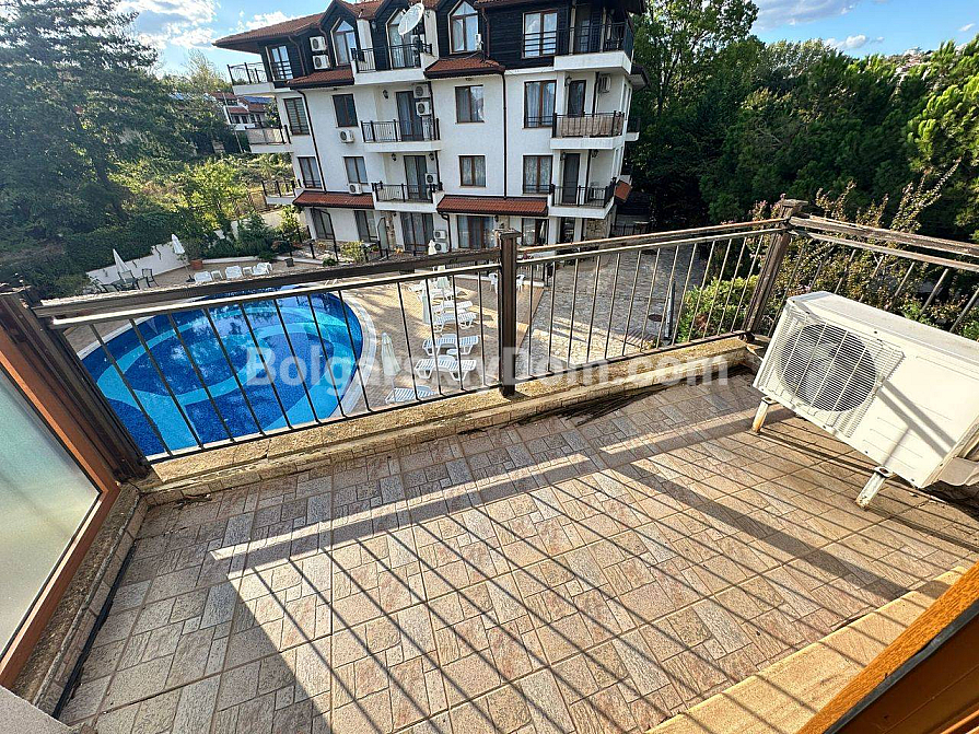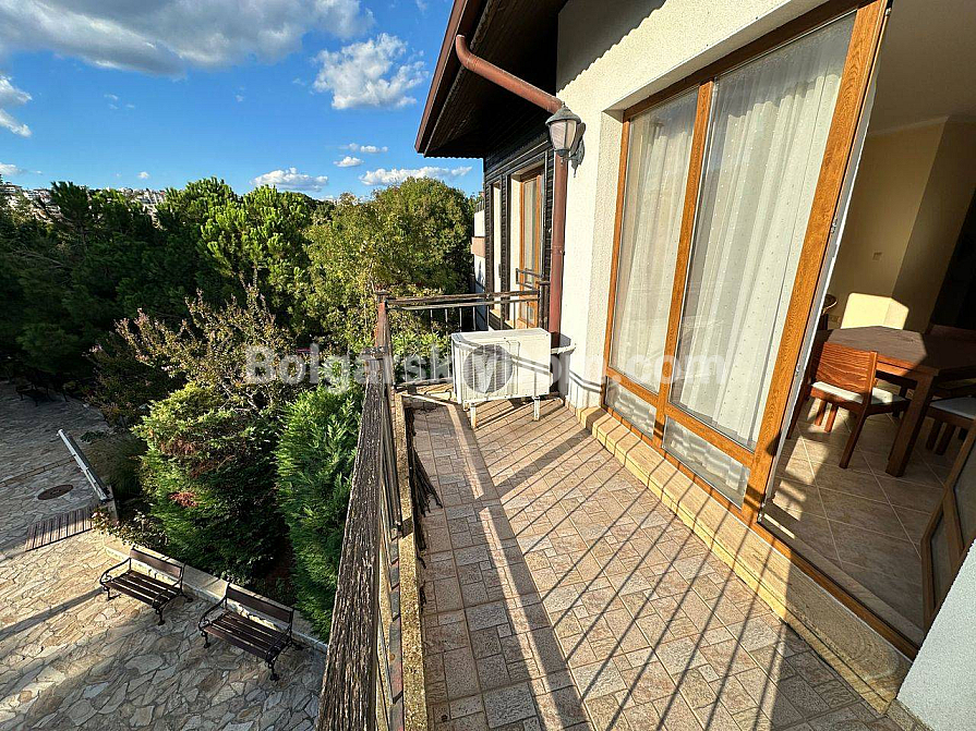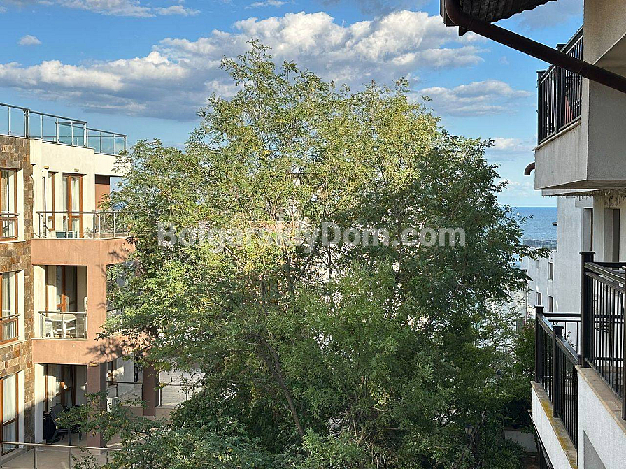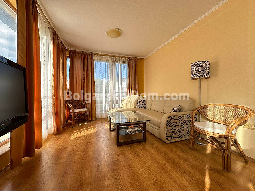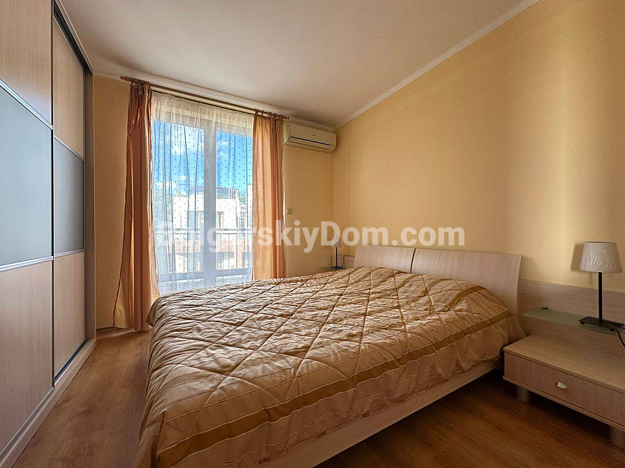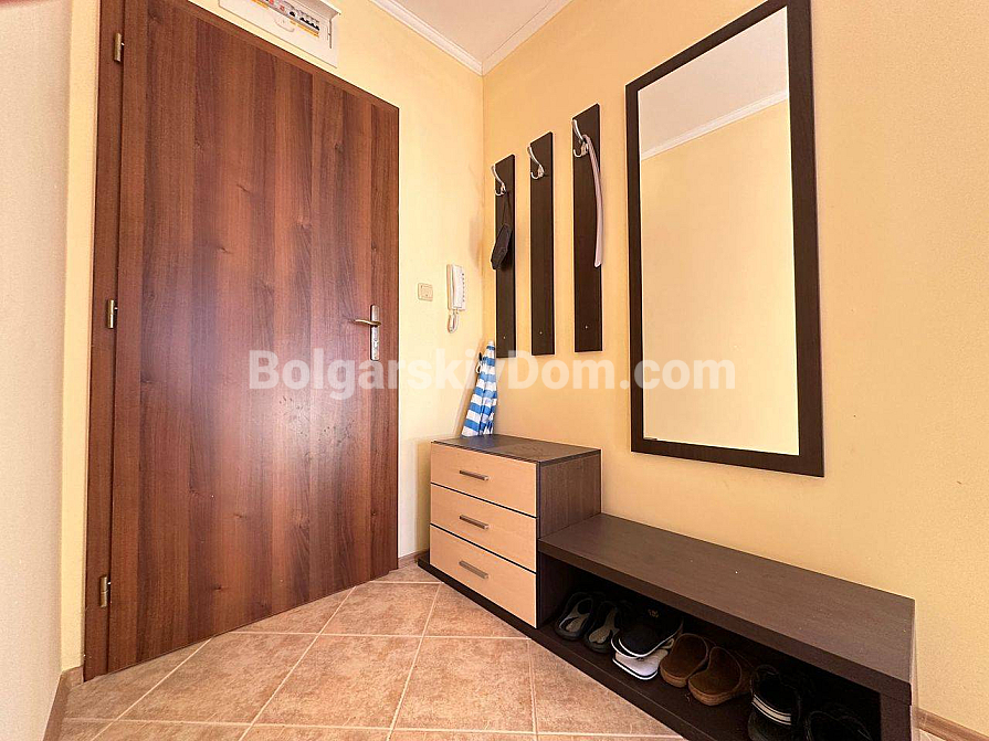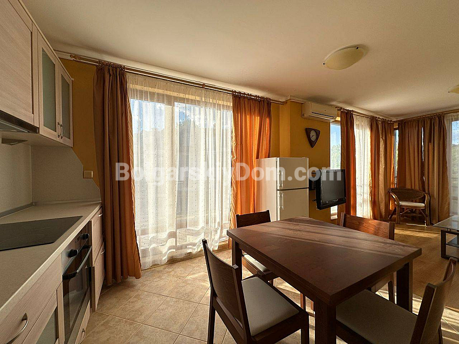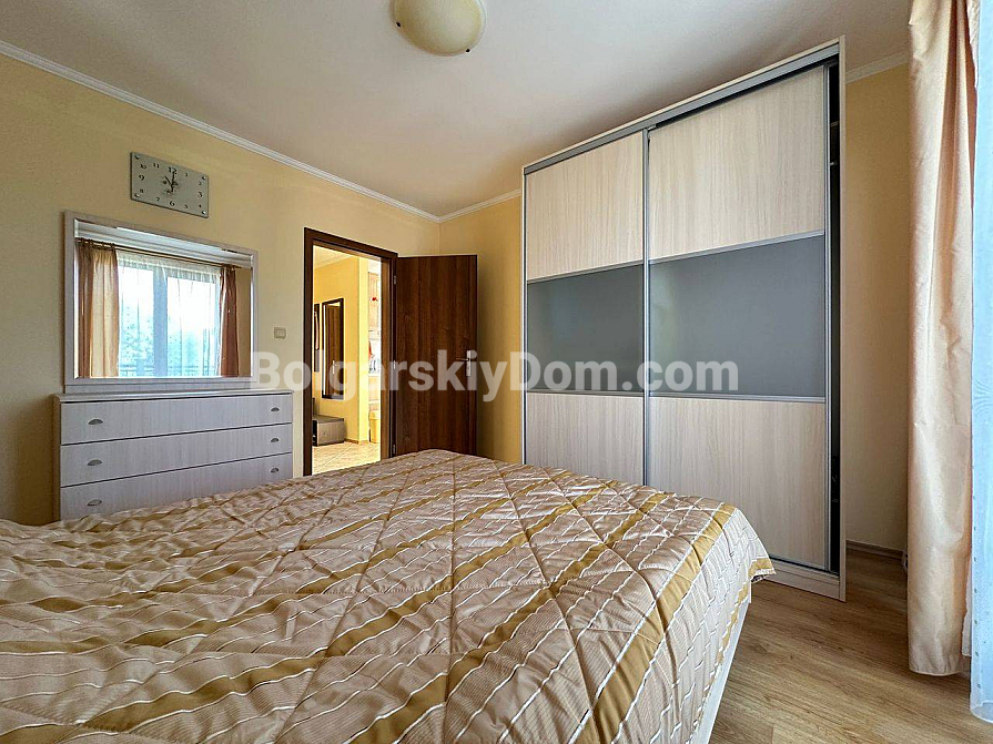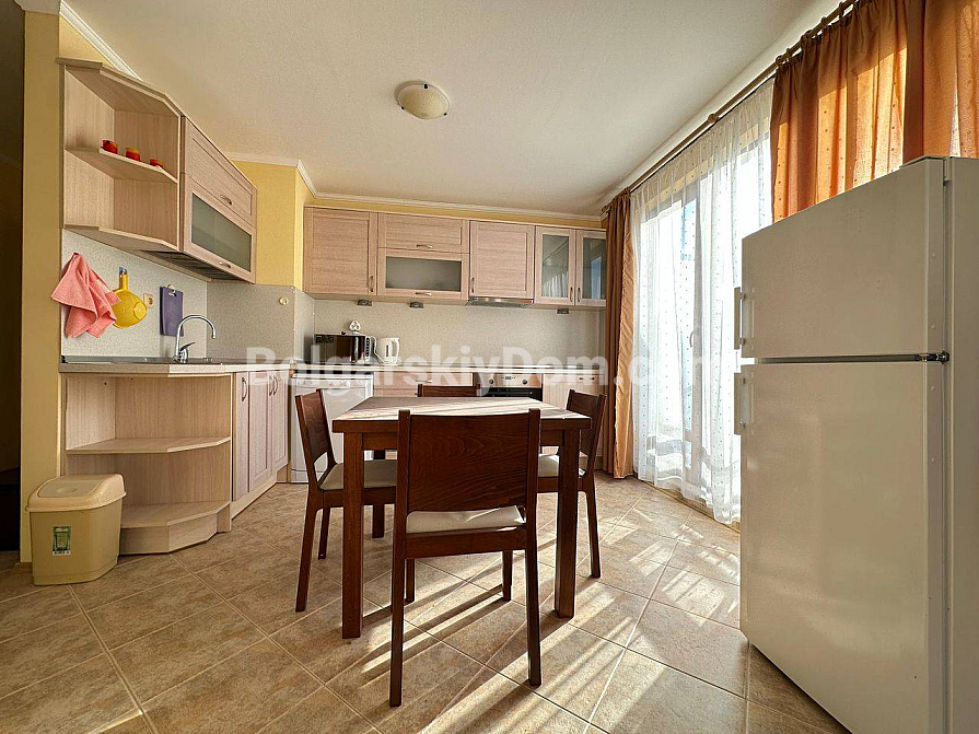 Przedstawiamy Państwu stylowe i jasne mieszkanie o powierzchni 70 m², zaledwie 100 metrów od morza. Znajduje się ono na drugim piętrze przytulnego czteropiętrowego kompleksu w Byala. Co wyróżnia ten apartament? Po pierwsze, przestronny salon sprytnie podzielony na część wypoczynkową i dużą kuchnię z jadalnią. Po drugie, dużo okien – mieszkanie jest zawsze jasne i przytulne. Ponadto posiada dwa tarasy: jeden w salonie z widokiem na basen, drugi w sypialni – wychodzący na zieleń z bocznym widokiem na morze. Wygodna łazienka z wanną. Niewielki przedpokój. Mieszkanie jest umeblowane i wyposażone w sprzęt AGD.