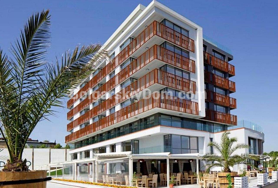Kompleks mieszkalny znajduje się w wyjątkowej lokalizacji, zaledwie 100 metrów od plaży i 300 metrów od centrum miasta, co czyni go niezwykle atrakcyjnym. Budynek został wybudowany z betonu i cegły, posiada dobrą izolację i jest wykończony płytkami. Infrastruktura okolicy imponuje swoją różnorodnością i obejmuje wszystko, co potrzebne do pełnego życia: restauracje, supermarkety, apteki, szkoły, przedszkola, centra fitness, a nawet kino. Nieruchomość w tak skomunikowanej dzielnicy charakteryzuje się wysoką płynnością i dużym potencjałem najmu.