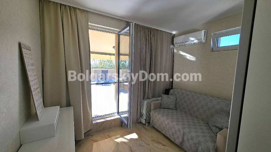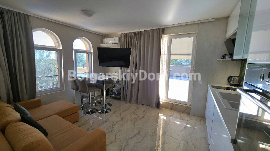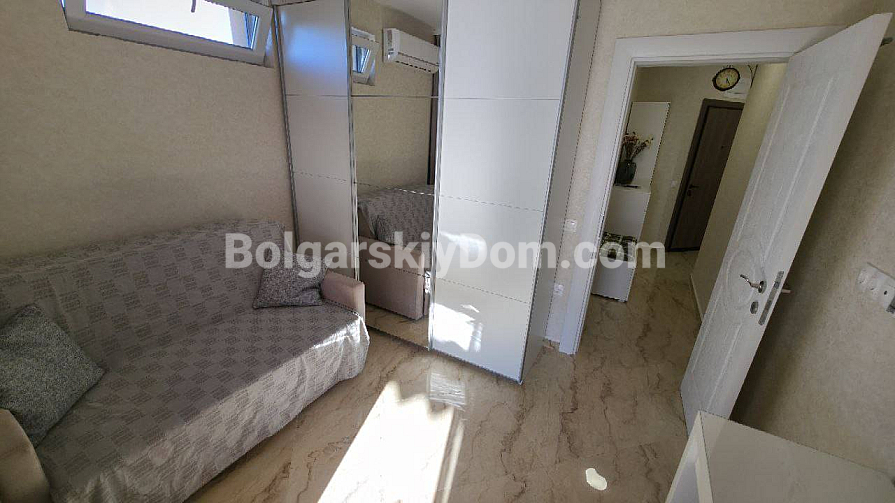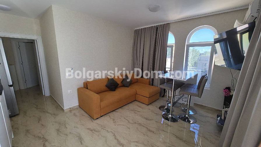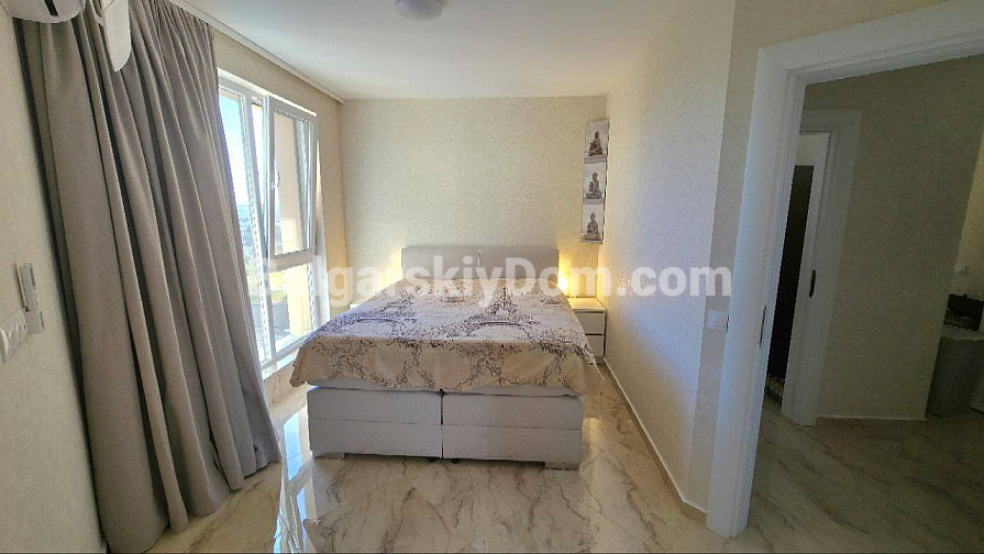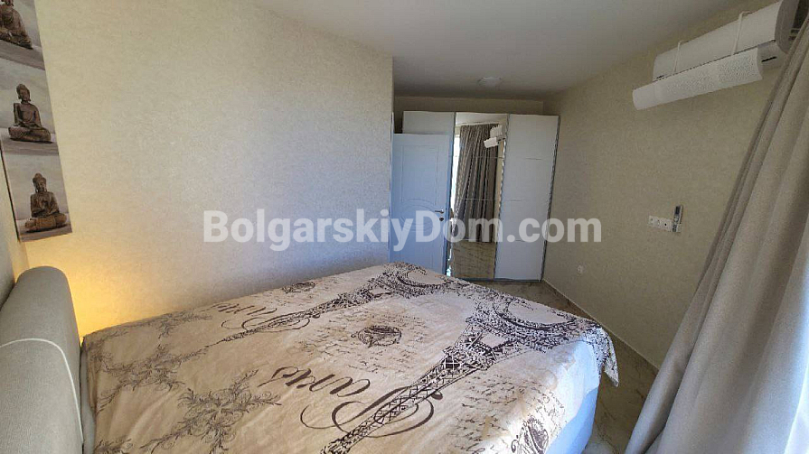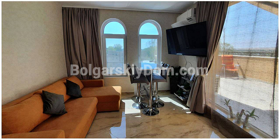 W katalogu firmy Bolgarskiy Dom znajduje się ekskluzywna nieruchomość, która zachwyca idealnym stanem i gotowością do natychmiastowego zamieszkania. Na sprzedaż: trzypokojowe mieszkanie w kompleksie Aphrodite Green w Słonecznym Brzegu. Apartament o powierzchni 120 m² znajduje się na szóstym, ostatnim piętrze i posiada funkcjonalny układ: przedpokój, salon z kuchnią, dwie sypialnie, łazienkę oraz duży, zagospodarowany taras. Nieruchomość jest w pełni umeblowana, wyposażona w sprzęt AGD, wszystko nowe. Szczególnego uroku wnętrzu dodają bardzo piękne okna w formie łuków.