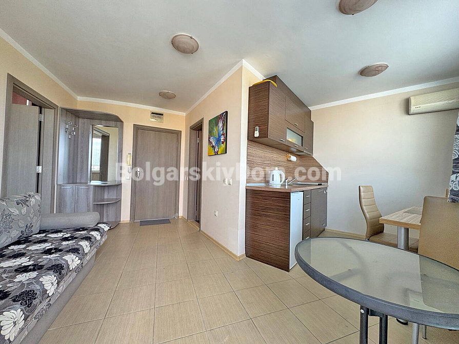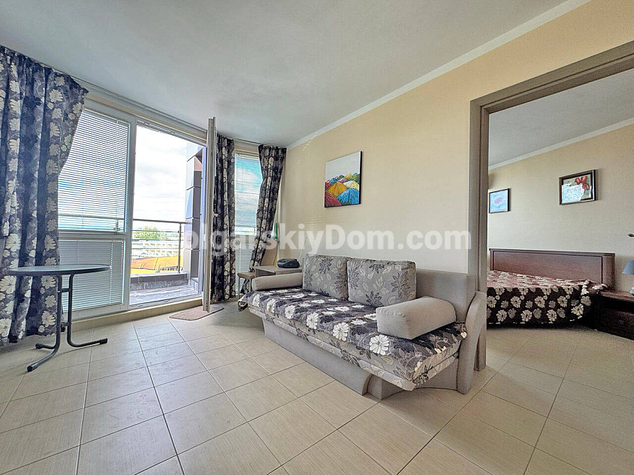 Firma Bolgarskiy Dom oferuje możliwość zakupu atrakcyjnej nieruchomości w jednym z najbardziej poszukiwanych kompleksów w Słonecznym Brzegu w korzystnej cenie. W kompleksie Sunny Beach Plaza na sprzedaż jest przytulne dwupokojowe mieszkanie o powierzchni 58 m², położone na piątym piętrze. Funkcjonalny układ obejmuje jadalnię z aneksem kuchennym, oddzielną sypialnię, łazienkę oraz balkon. Z okien roztacza się widok na miasto, basen i piękną okolicę. Mieszkanie jest w pełni gotowe do zamieszkania i nadaje się do całorocznego pobytu.