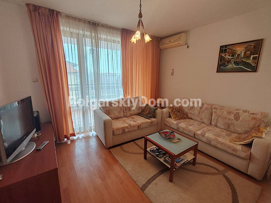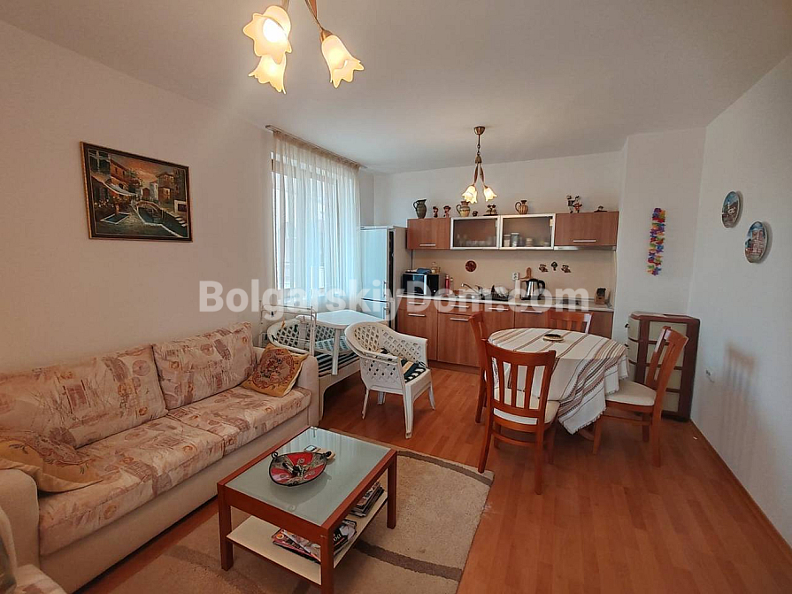 Nowość w zielonej części topowego kurortu, zaledwie kilka minut od Morza Czarnego! Zespół agencji nieruchomości Bolgarskiy Dom przedstawia Państwu przytulny i przestronny apartament, który stanie się idealną bazą do wypoczynku lub stałego zamieszkania w prestiżowej części Słonecznego Brzegu. W kompleksie Efir na sprzedaż jest dwupokojowe mieszkanie o powierzchni całkowitej 59 m², położone na piątym piętrze (nie ostatnim). Układ obejmuje oddzielną sypialnię, salon z już urządzoną częścią kuchenną, łazienkę oraz balkon. Ważne: jest przedpokój oddzielający „gospodarczy” węzeł, a w łazience znajduje się wanna. Wnętrze klasyczne, w dobrym stanie funkcjonalnym.