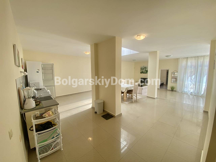 Topowa oferta, która jest już gotowa do oględzin i zakupu! To nieruchomość, która natychmiast trafia do kategorii „koniecznie zobaczyć!” Unikalne, przestronne dwupokojowe mieszkanie o powierzchni 107,8 m² w VIP-dzielnicy Świętego Własa. Główny atut: widok na morze i praktycznie brak opłat eksploatacyjnych. Mieszkanie znajduje się na parterze (ze względu na ukształtowanie terenu). Wewnątrz czeka na Ciebie pełen komfort: ogromny salon z częścią kuchenną i jadalną oraz oknem mansardowym – to brzmi i wygląda naprawdę świetnie! Apartament można łatwo przebudować na trzypokojowy. Jest już umeblowany, wyposażony w sprzęt AGD i klimatyzację, a z dużego tarasu rozpościera się panoramiczny widok na morze. Dodatkowy plus: na tym samym piętrze znajduje się komórka lokatorska o powierzchni 10 m², co jest bezcenne dla wygody długoterminowego zamieszkania.